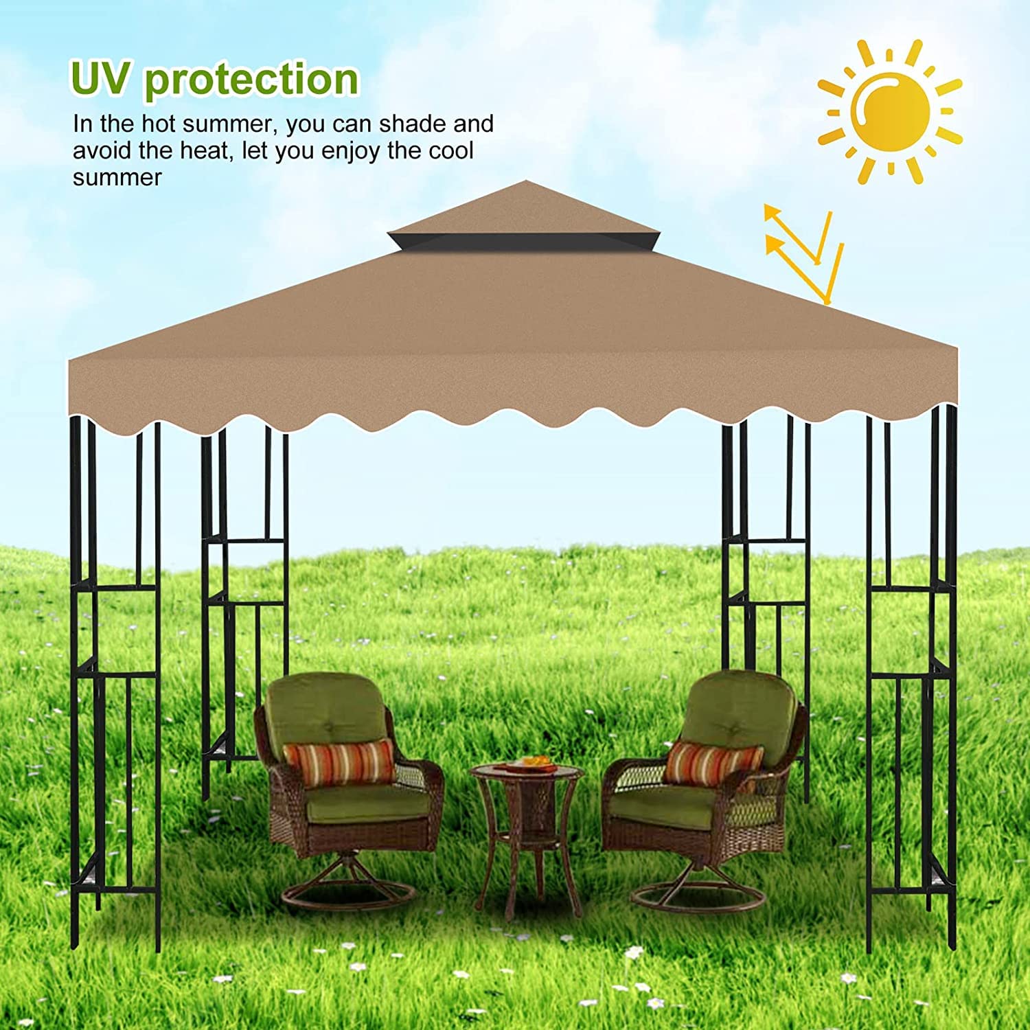 10'X10' Gazebo Canopy Top Replacement, Double Tier Gazebo Canopy Replacement Top Cover with Air Vent, Grill Gazebo Top Roof for Shop Garden Patio Yard Outdoor, Pavilion Cover Sunshade (Khaki A)