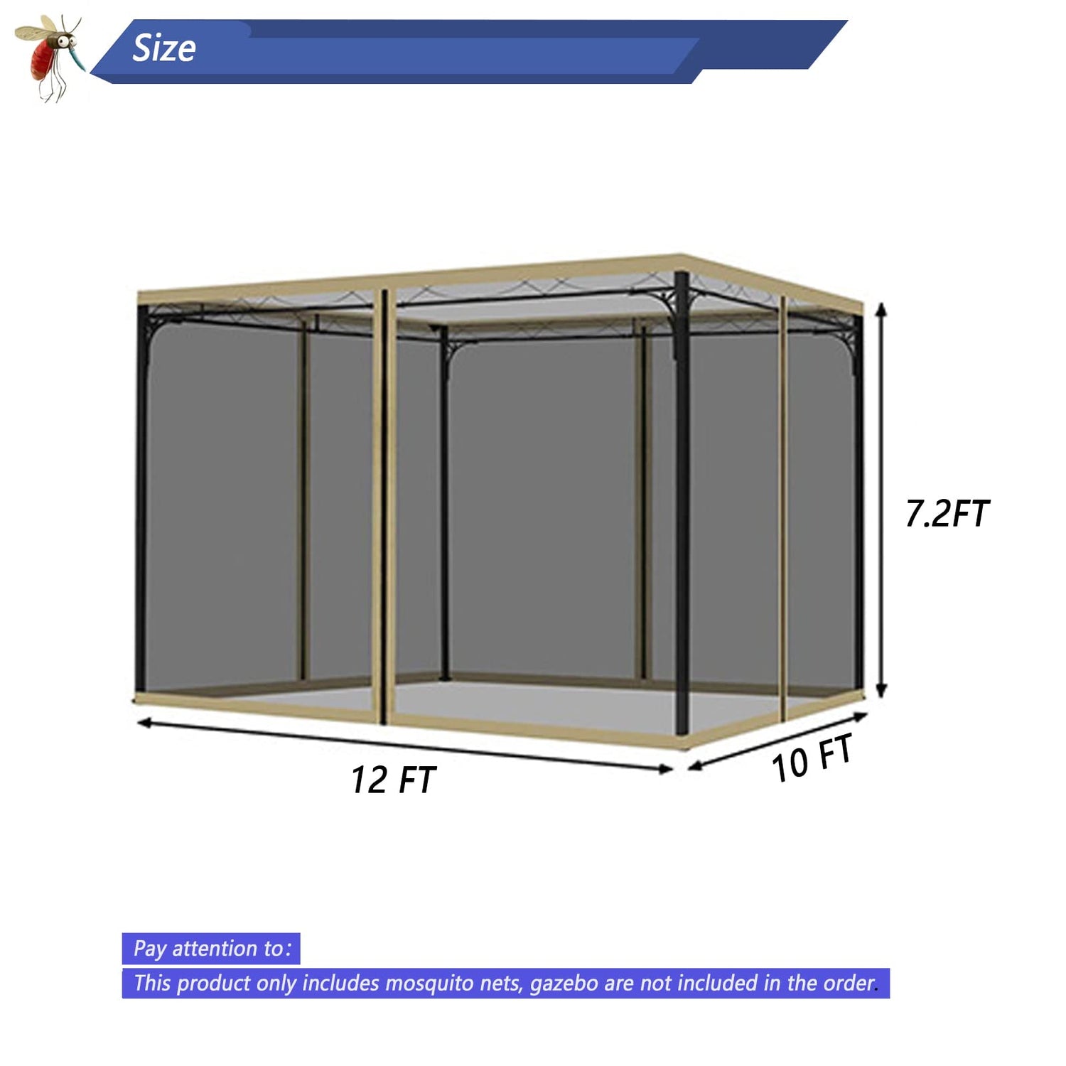 10x12 Gazebo Replacement Mosquito Netting, 4-Panel Sidewall Screen with Zipper Universal Black (10'x12')