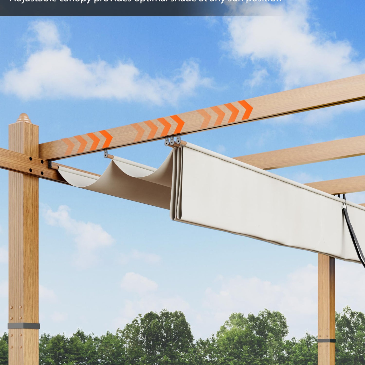 - Open View, Enjoy Nature: The outdoor pergola with retractable canopy is designed with a built-in sliding track that allows you to easily move the canopy and customize the shaded area as needed. It not only provides ample shade but also lets you enjoy the natural beauty, fresh air, and sunlight around you.