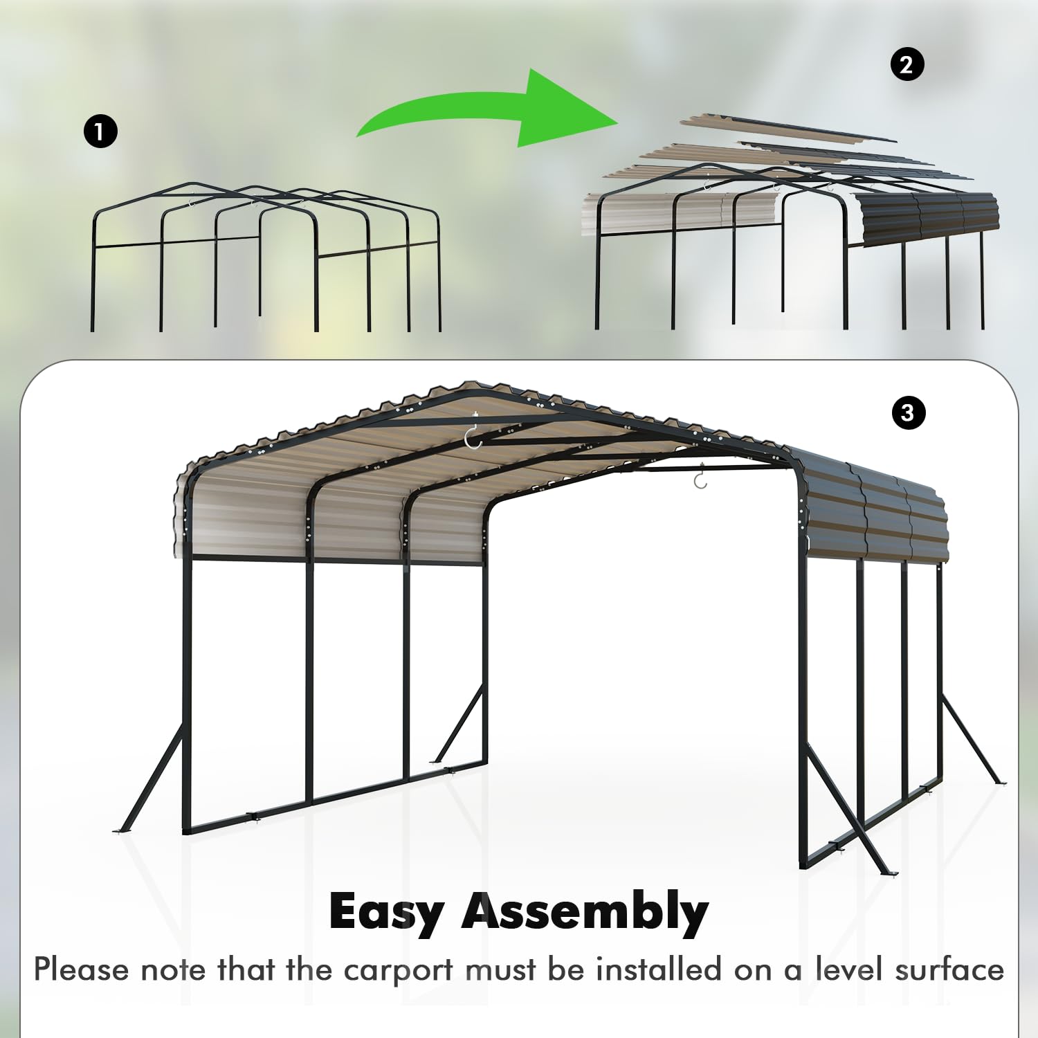 10x15FT Metal Carport, Heavy Duty Car Port Canopy with Iron Roof and Frame, Extra Large Carports Withstand Strong Wind or Heavy Rain, Suitable for Parking Pickup, Boat, Car, and Tractor