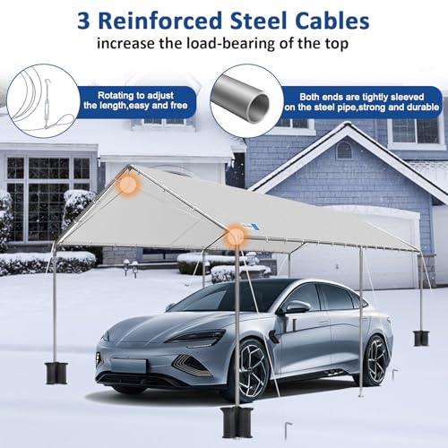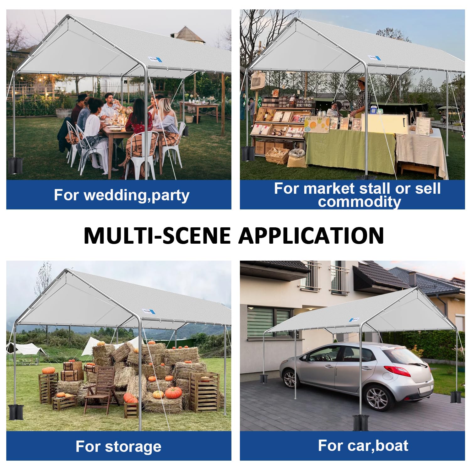 - Extra-thick Polyethylene Fabric:Reinforced PE material is Tear-proof, Waterproof and Anti-UV. Industrial grade Cover Fabric for long lasting durability and protection guaranteed could extended service life of the carport canopy