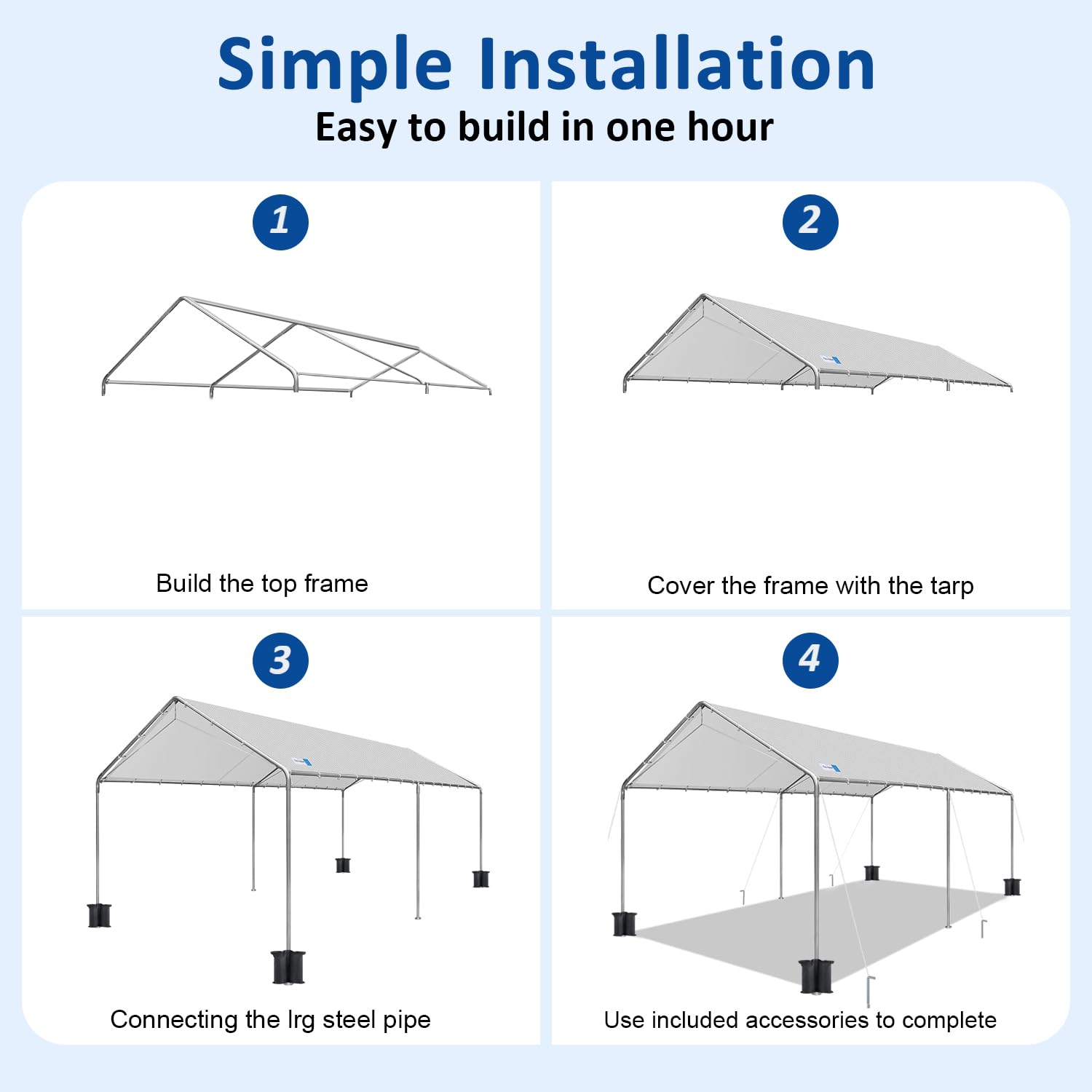 - Upgraded Galvanized Tube: Heavy Duty Rust Resistant galvanised steel framework and metal corner joint makes our carport more durable