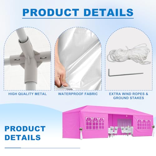 10x30ft Ez Pop up Canopy Tent with 8 sidewalls Easy Up Commercial Outdoor Canopy Wedding Party Tents for Parties All Season Wind & Waterproof Gazebo with Roller Bag (Pink, 10x30')