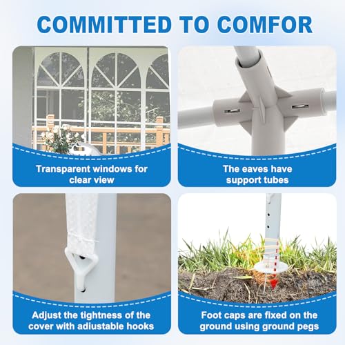 - Easy Assembly: With its user-friendly design, setting up is a breeze. It’s perfect for do-it-yourself installation.You’d better to have an assistant to help, no additional tools of the patio tent are required, just keep the frame steady when assemble the tent steel tube and cover.