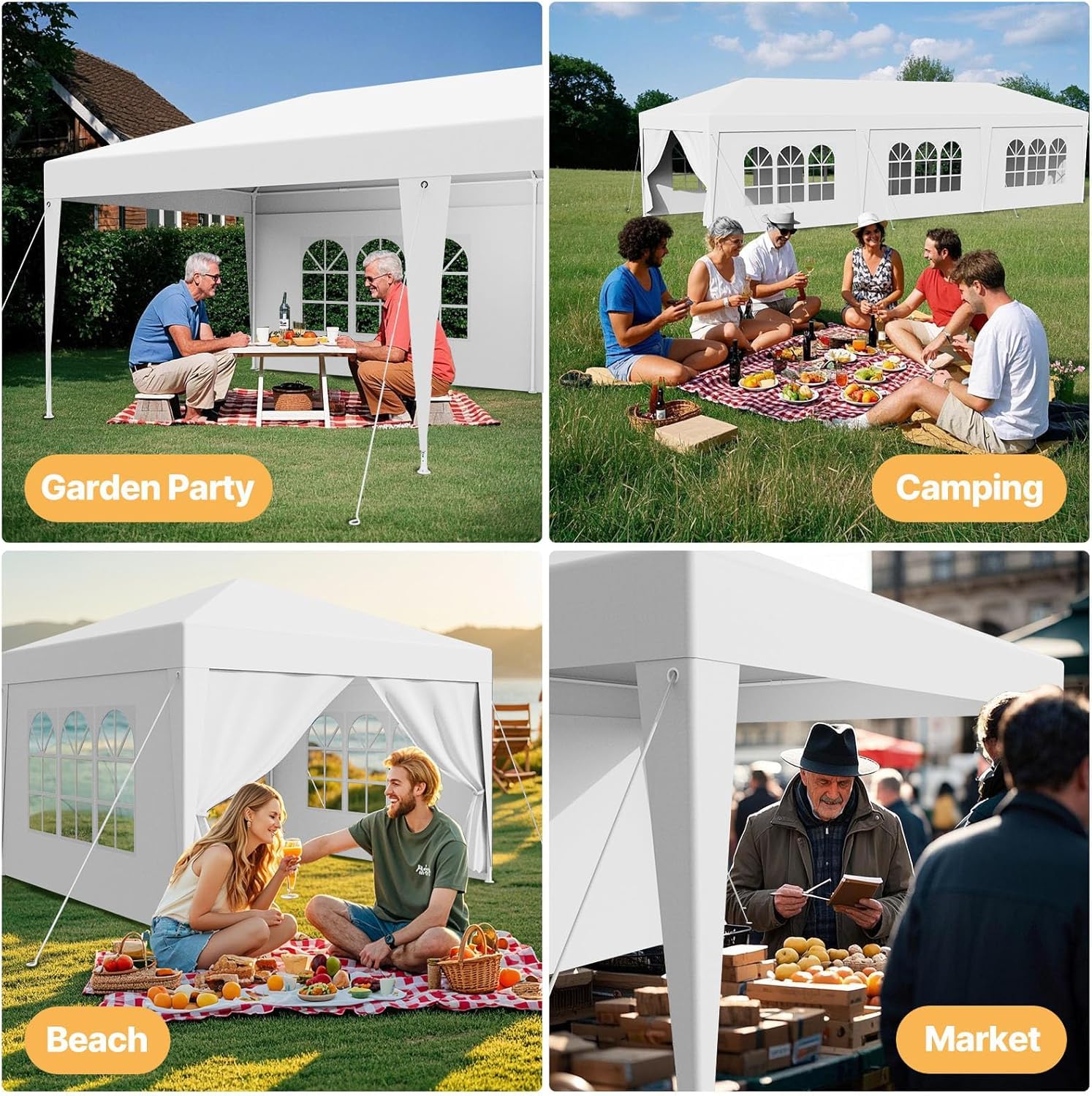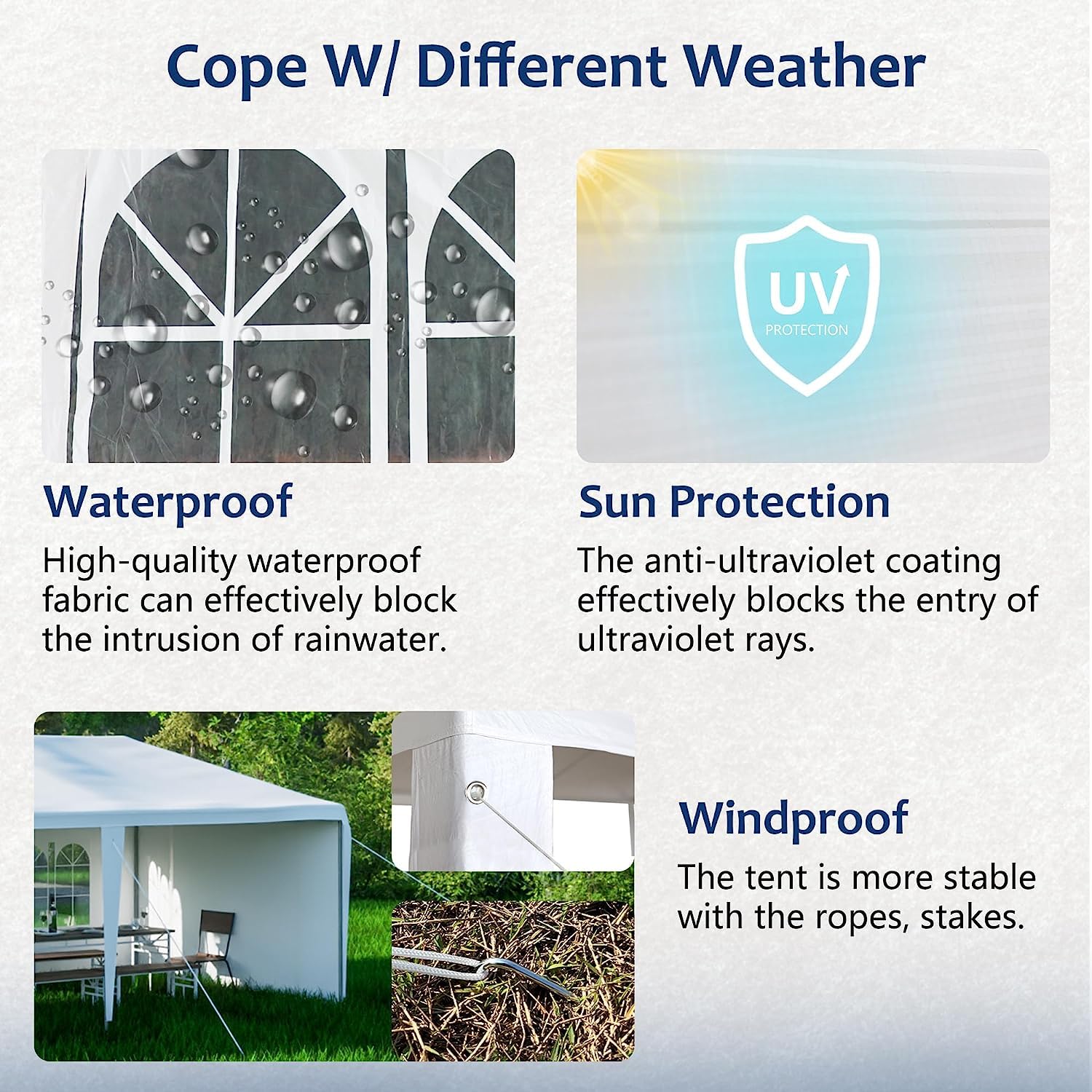 - Note: Please pay attention that this canopy is meant for temporary use. We advise customers to never leave the tent overnight or under bad weather conditions. After installation, you can enjoy shelter and shade with your friends together.