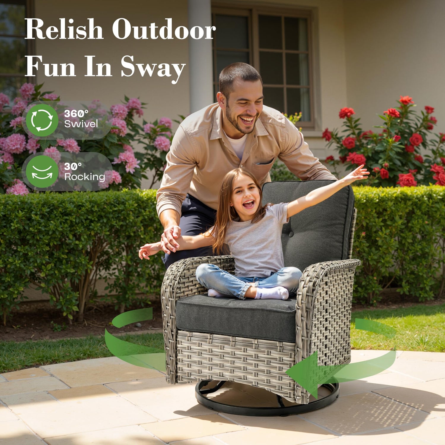 - Comfy Swivel Chair:Offering 360-degrees of swivel action and a hint of exciting rock, your comfort is its command with its ergonomic design. Ideal for outdoor living as the perfect partner to your patio pieces, it’s ready to amp up relaxation
