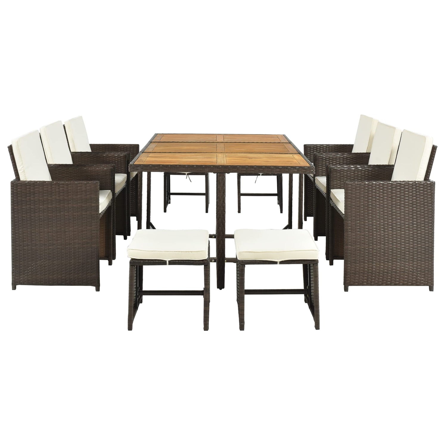 11-Piece All-Weather Outdoor PE Wicker Dining Table Set, Acacia Wood Table with Adjustable Feet and Foldable Dining Chair, Rattan Dining Furniture Set, Space-Saving