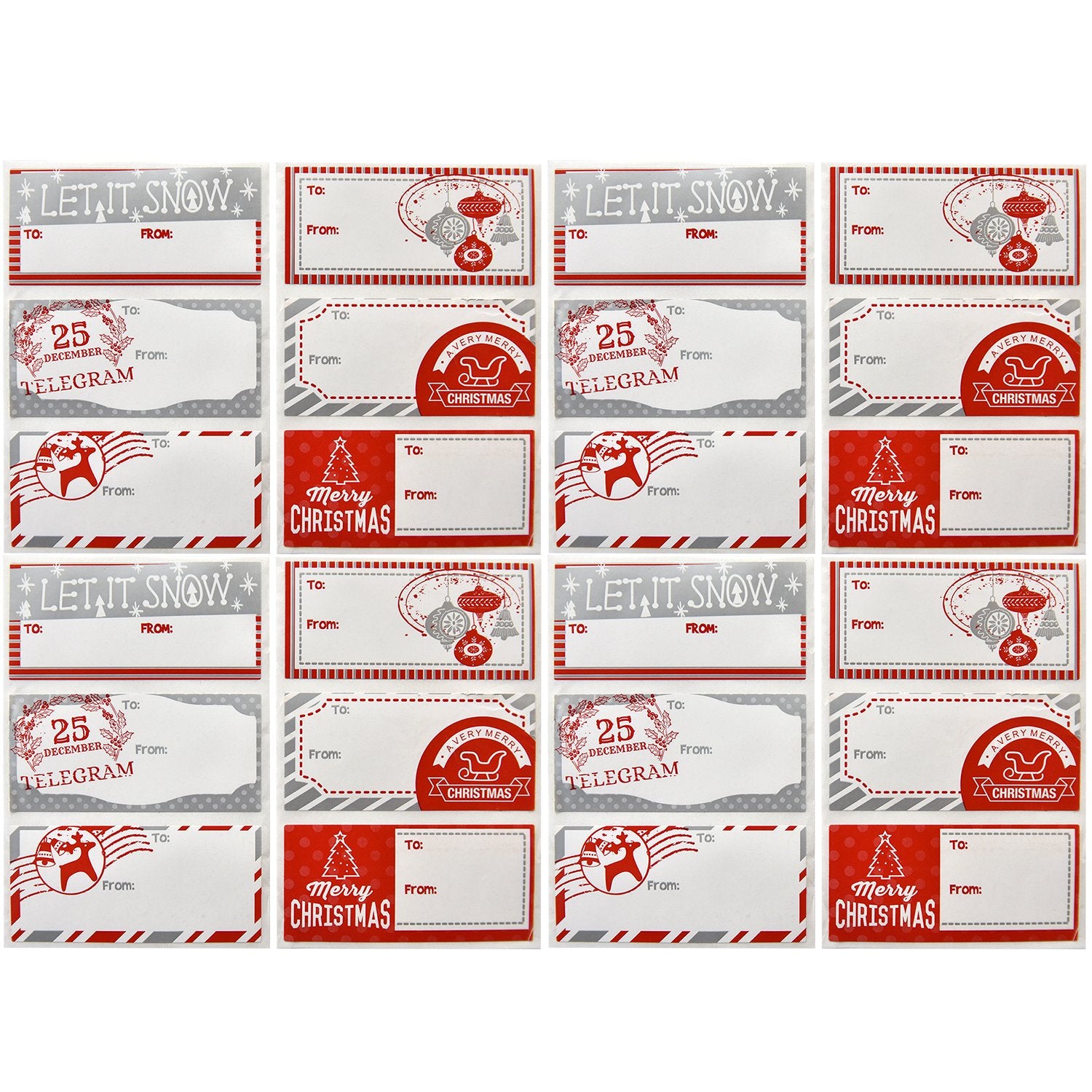 - The Gift Boutique 110 Count Christmas Gift Tag Stickers set includes 110 elegant red and silver tags, each measuring 1" x 2.25". Perfect for personalizing your holiday gifts, these tags come in a convenient roll and are designed to enhance your festive wrapping experience.