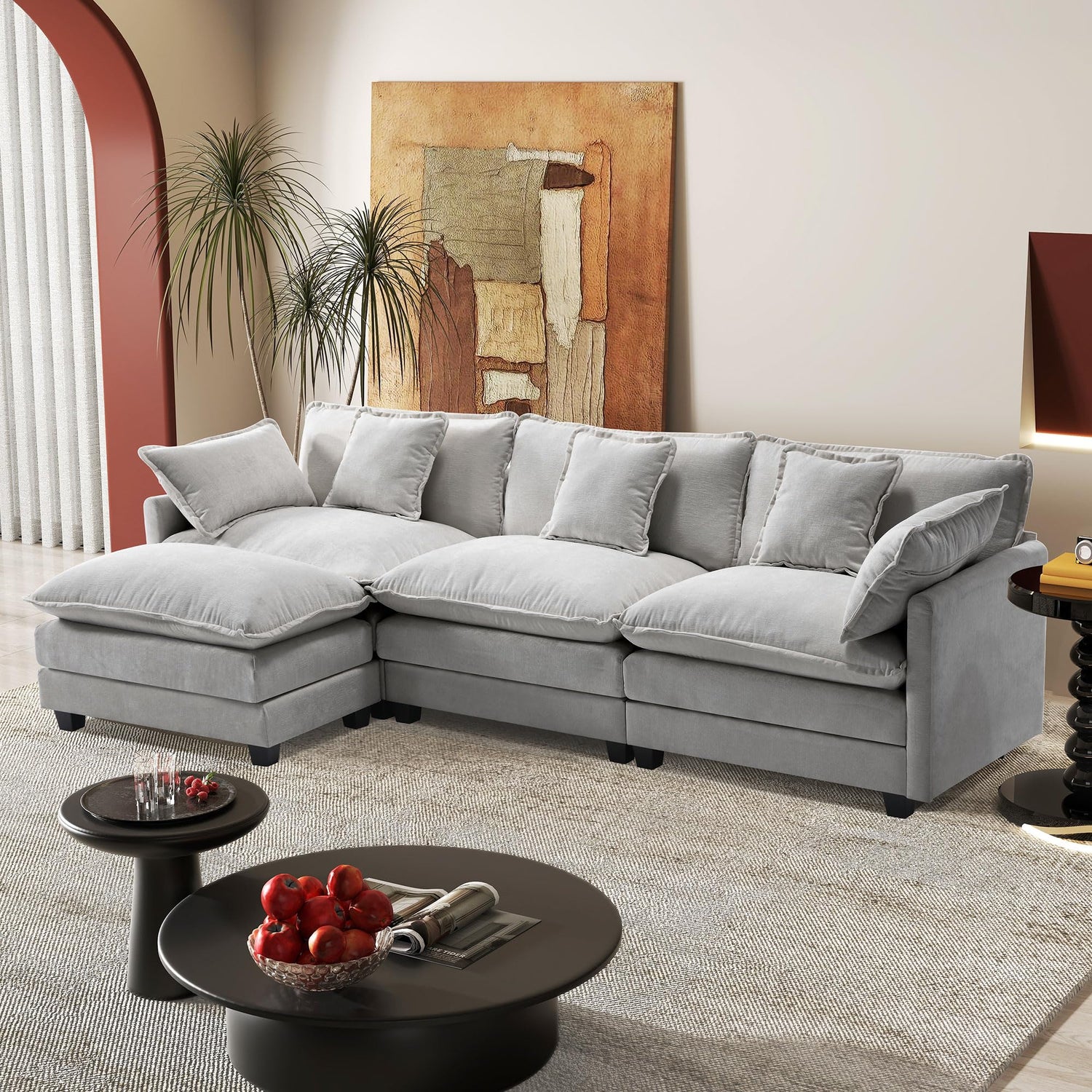 - 【Modular Sectional for Flexible Rearrangement】Each component of this sofa set is designed as an independent unit, allowing for easy movement and rearrangement to suit various room layouts. This versatile furniture can be placed in the living room, guest room, or basement entertainment area. The modular design of the sectional sofas accommodates a wide range of settings and gathering requirements.