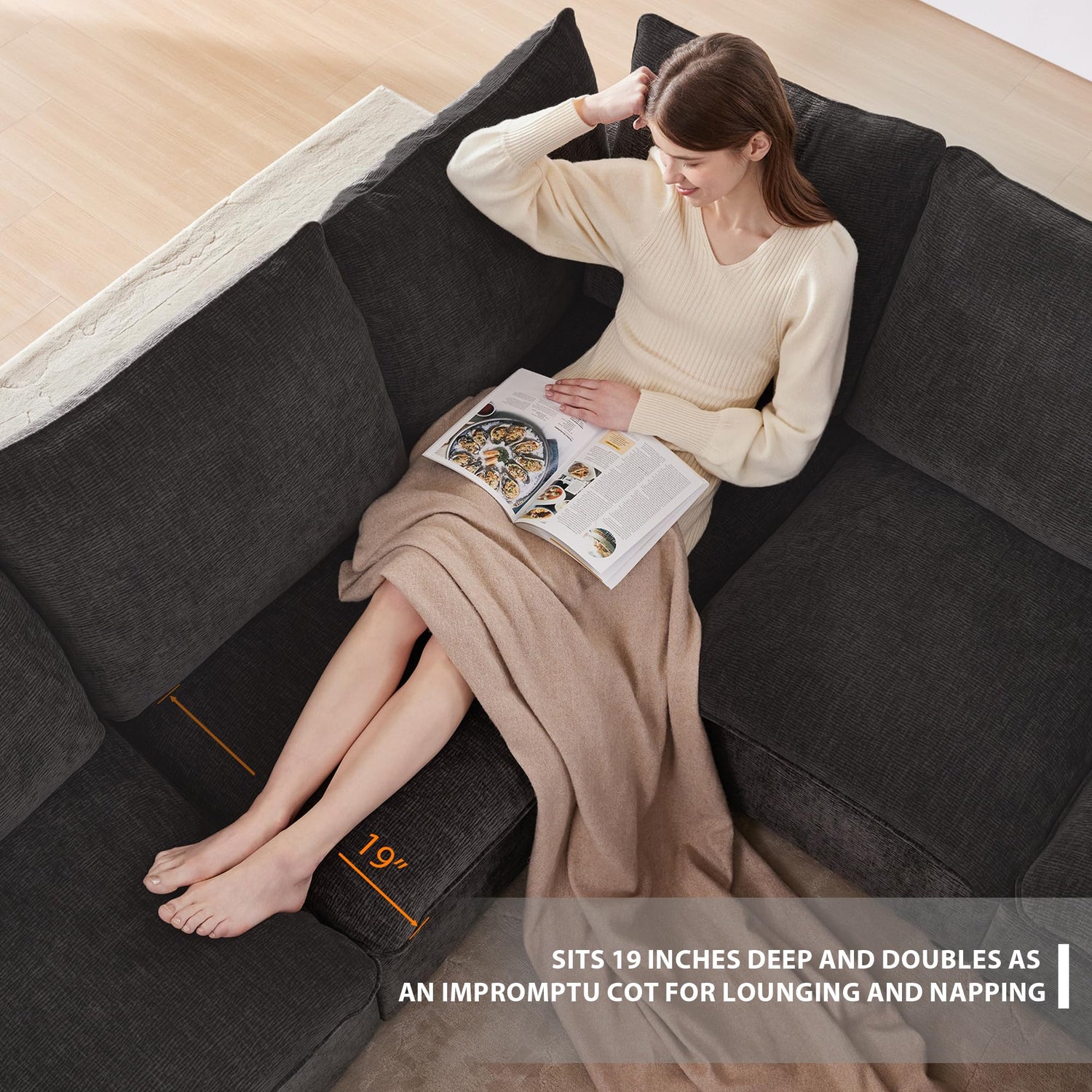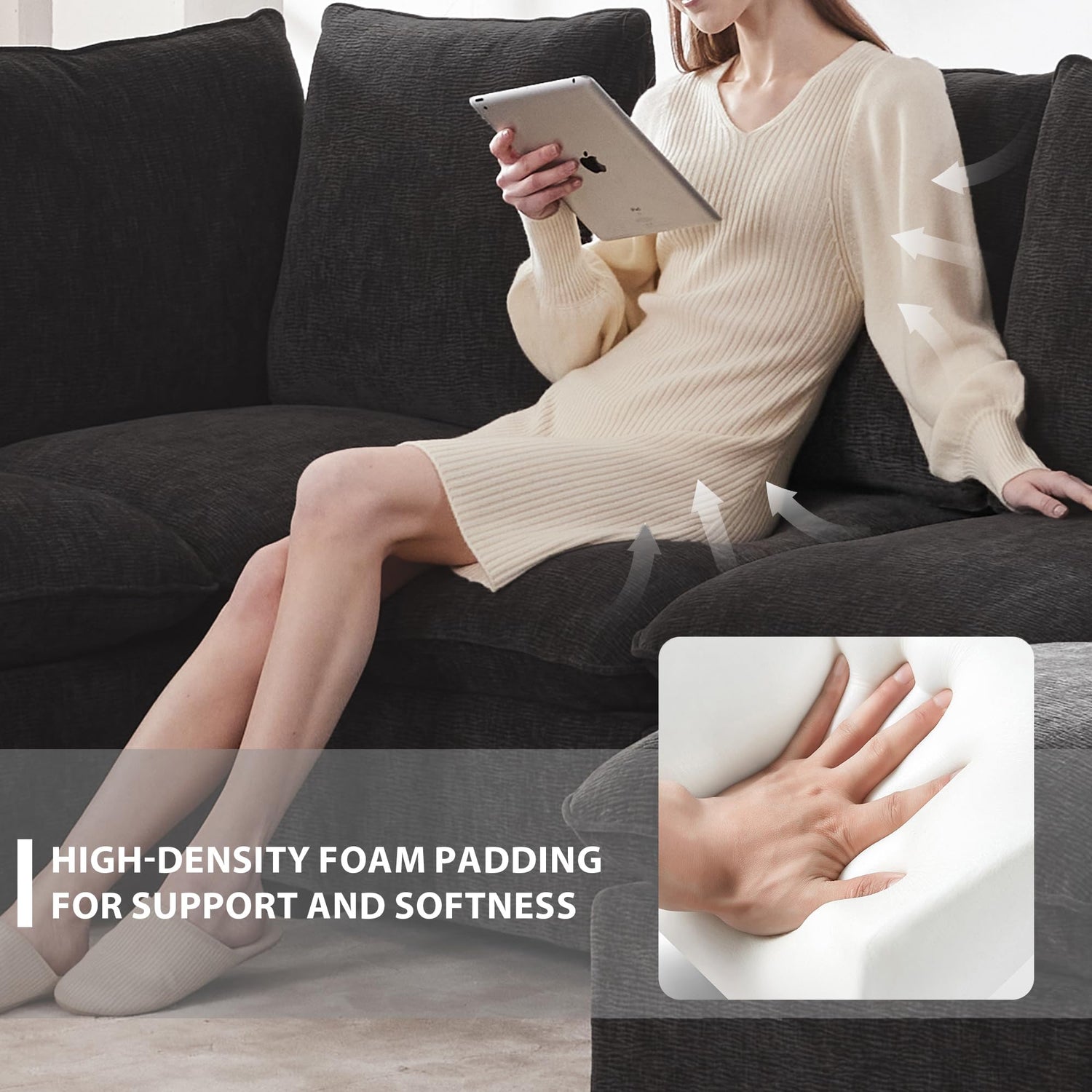 - 【Cloud-like Comfort】The oversized cloud sofa upholstered with 1 layer of foam padding and 1 layer of chenille fabric and built-in high-resilience springs.each seat is equipped with match pillows and cushions,that are skin-friendly comfortable to touch,the backrests cleverly fit the human body curve,the wide seat depth and width can make you feel more comfortable when you sit on it.creativity and comfort make your famliy time even more memorable.