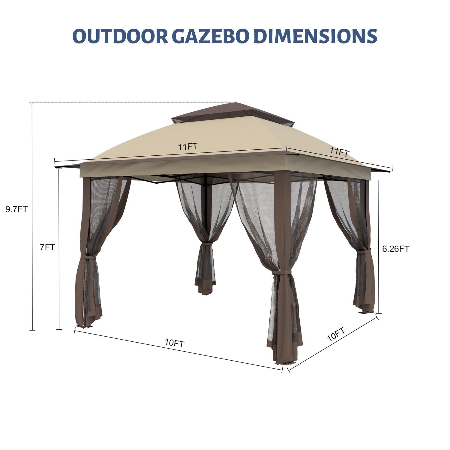 11'X11' Gazebo Pop Up with 4 Sidewalls Mosquito Netting, Heavy Duty Patio Gazebo Canopy Tent with Double Air Roofs for Backyards, Patios, Decks, Gardens, Parks