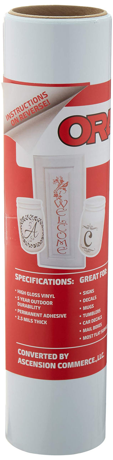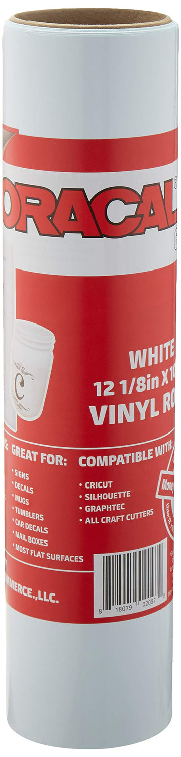 12.125" x 10ft Roll of Oracal 651 White Craft Vinyl - On a 2.5" Core - Adhesive Vinyl for Cricut, Silhouette, and Cameo Cutters - Gloss Finish - Outdoor and Permanent