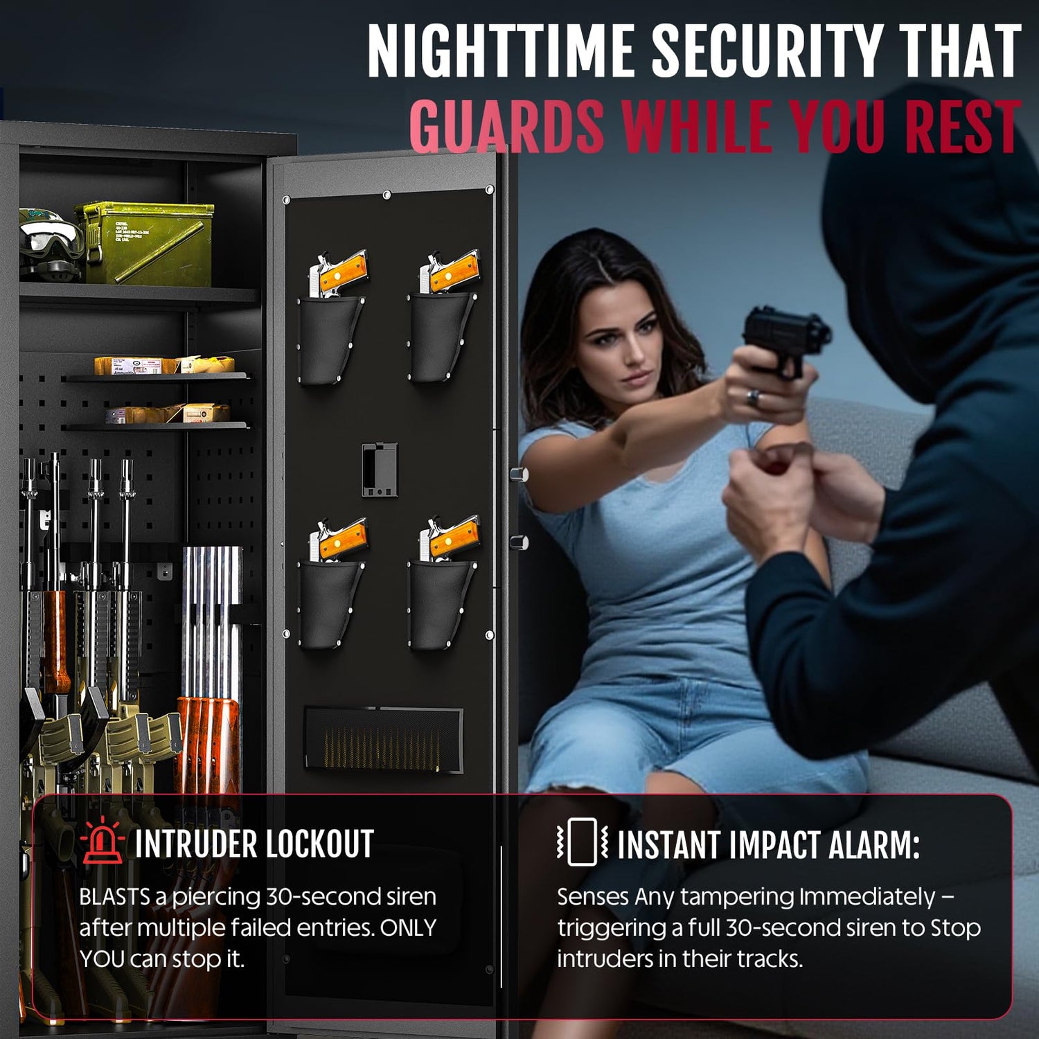 - 【Heavy-Duty Security Build】Designed with reinforced steel and anti-pry construction, this safe offers superior strength and theft protection to keep your guns safely stored and out of unauthorized hands.