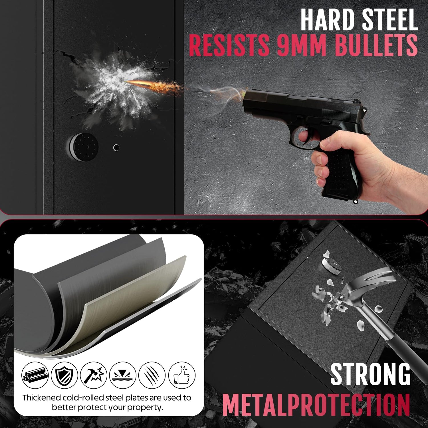 - 【Discreet Silent Mode & Anti-Tamper Alarm】Operate quietly with silent mode for discreet access. The built-in alarm triggers instantly if someone tries to tamper with your safe, giving you an extra layer of security.