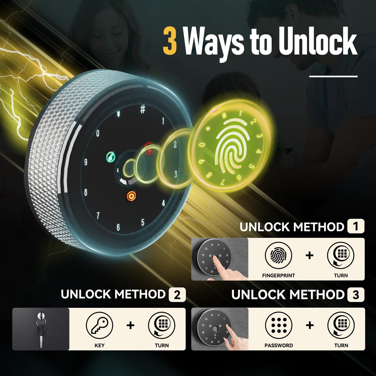 - [ Triple-Layer Rapid Access Security ] Access your firearms instantly with three secure methods: 1. Biometric Fingerprint Scanner: 0.1-second emergency access. 2. Programmable Digital Keypad: Set a 3-12 digit personalized code. 3. Backup Physical Keys: Dual emergency keys included.