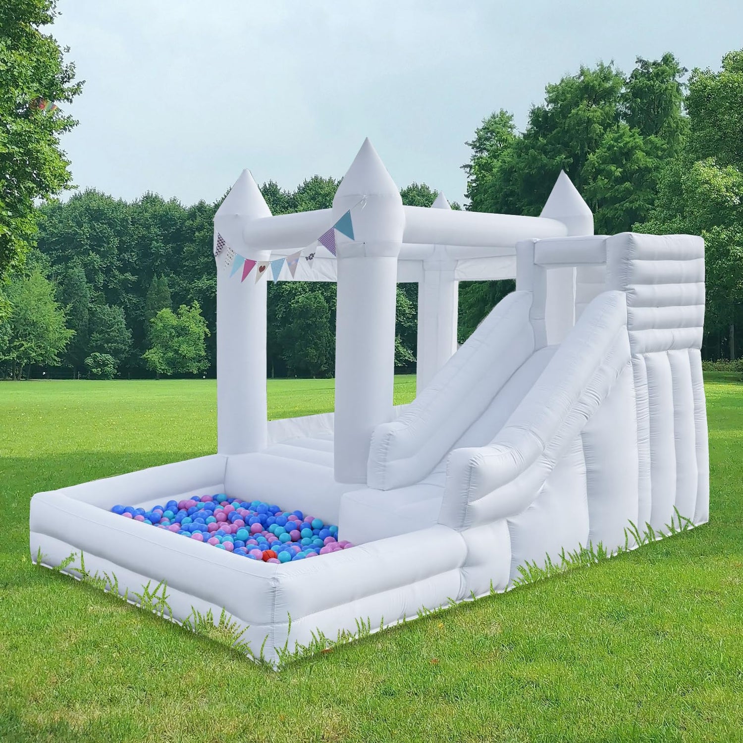 12 FT Oxford White Inflatable Bounce House, Bounce House With Ball Pit, Bounce House With Slide, Indoor And Outdoor Large Inflatable Castles Bounce House for Kids 3-12 Holiday Decoration Wedding Party