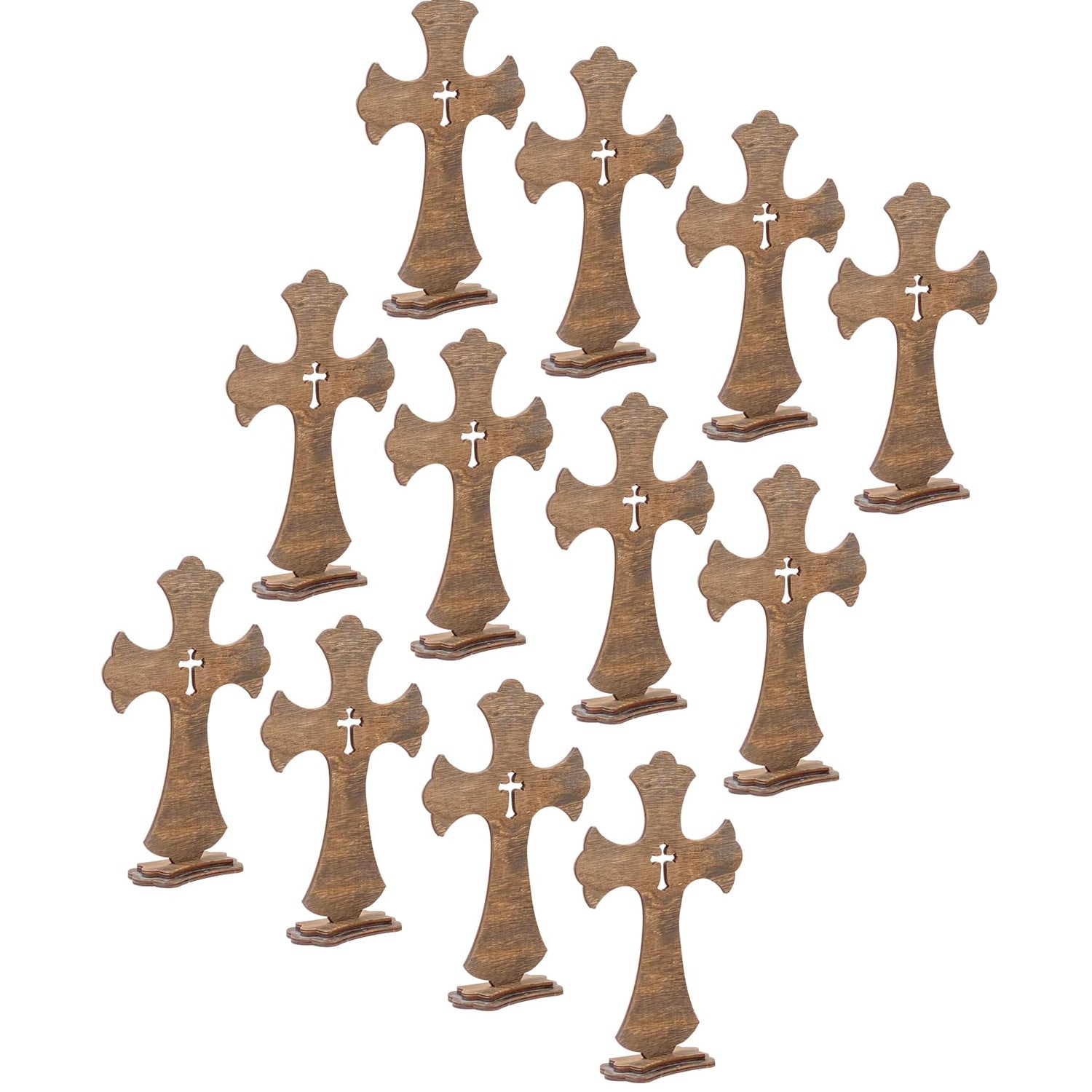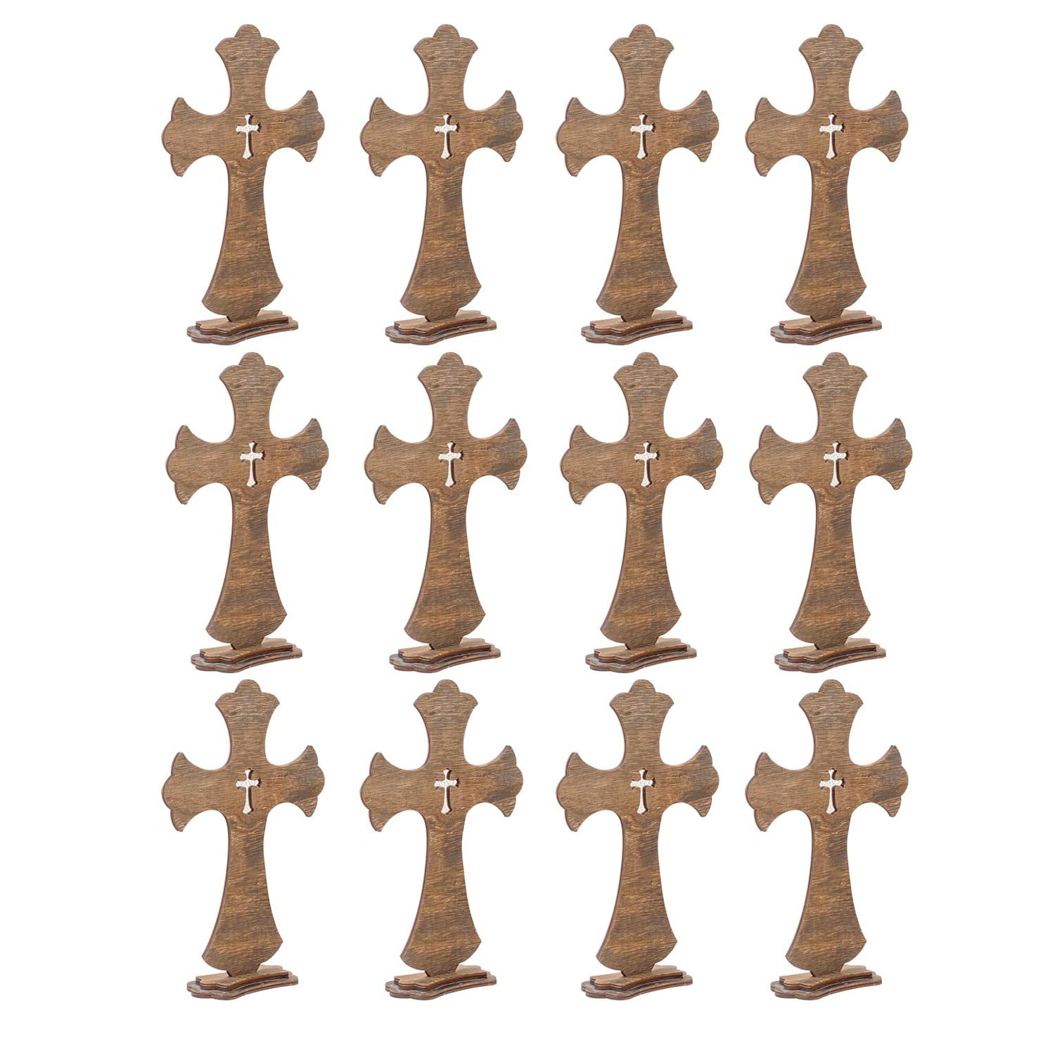 Details: 12 Inch 12 Pack Brown Wood Crosses Torched Wooden Tabletop Cross Rustic Standing Cross for Baptism Centerpieces Home Church Decor Prayer Gifts