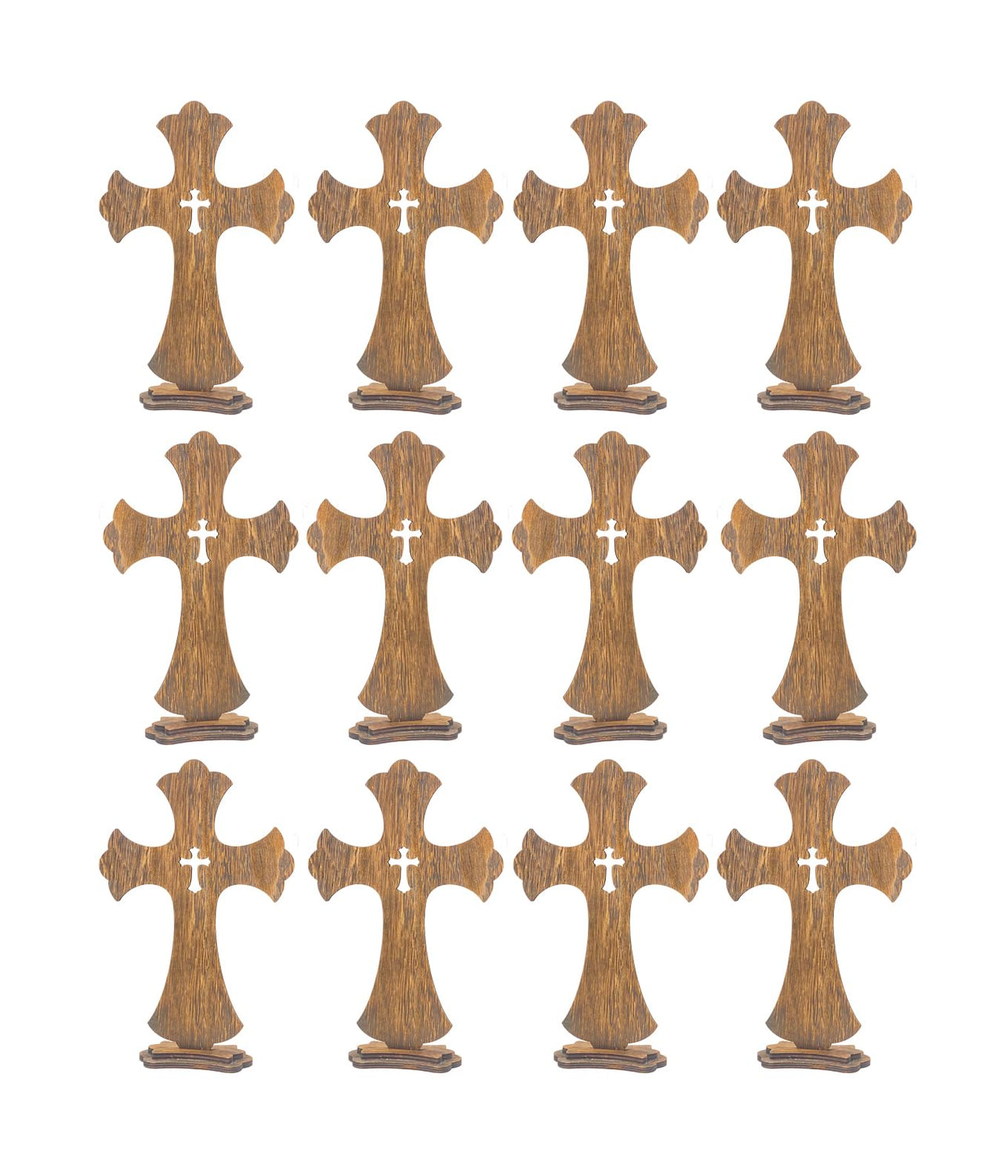 12 Inch 12 Pack Brown Wood Crosses Torched Wooden Tabletop Cross Rustic Standing Cross for Baptism Centerpieces Home Church Decor Prayer Gifts