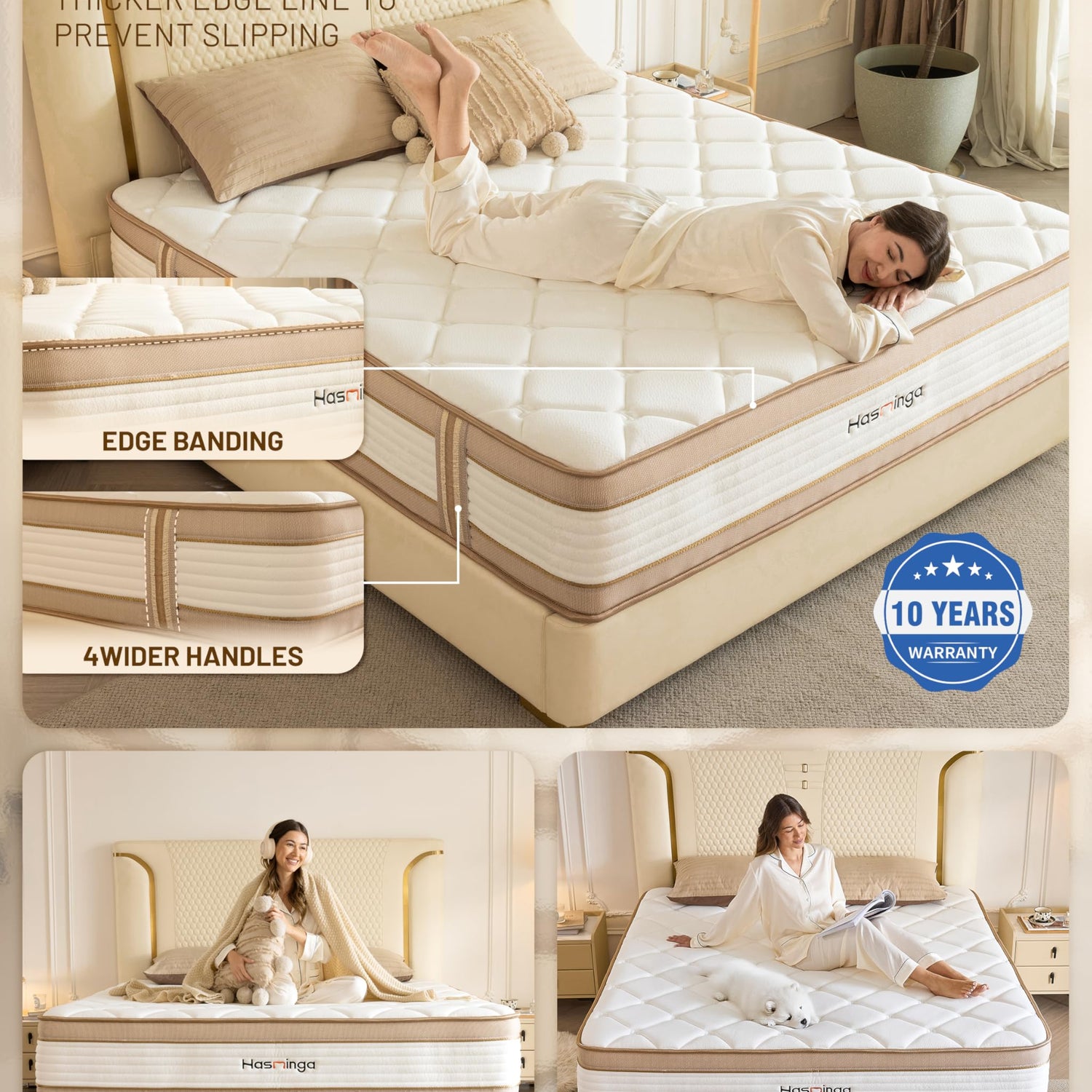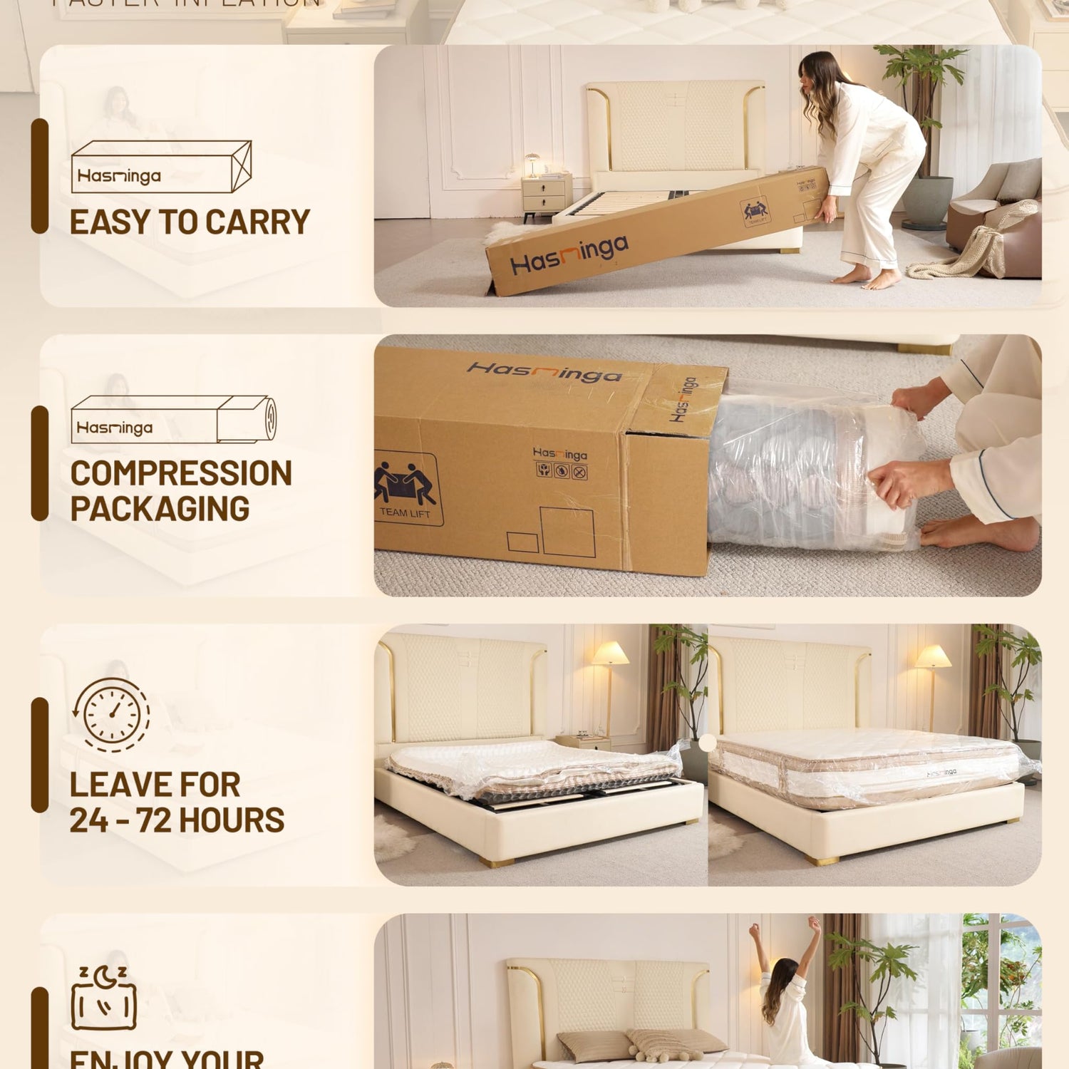 - 【CertiPUR-US Certified & 10-Year Warranty – Bed in a Box】Our mattress is CertiPUR-US certified, ensuring high-quality, toxin-free materials for a healthier sleep. Shipped in a compact box, it’s vacuum-sealed for easy setup—just unbox, unroll, and let it expand for 24-72 hours. Backed by a 10-year warranty, giving you peace of mind for years to come. Available in Full, Queen, and King sizes.