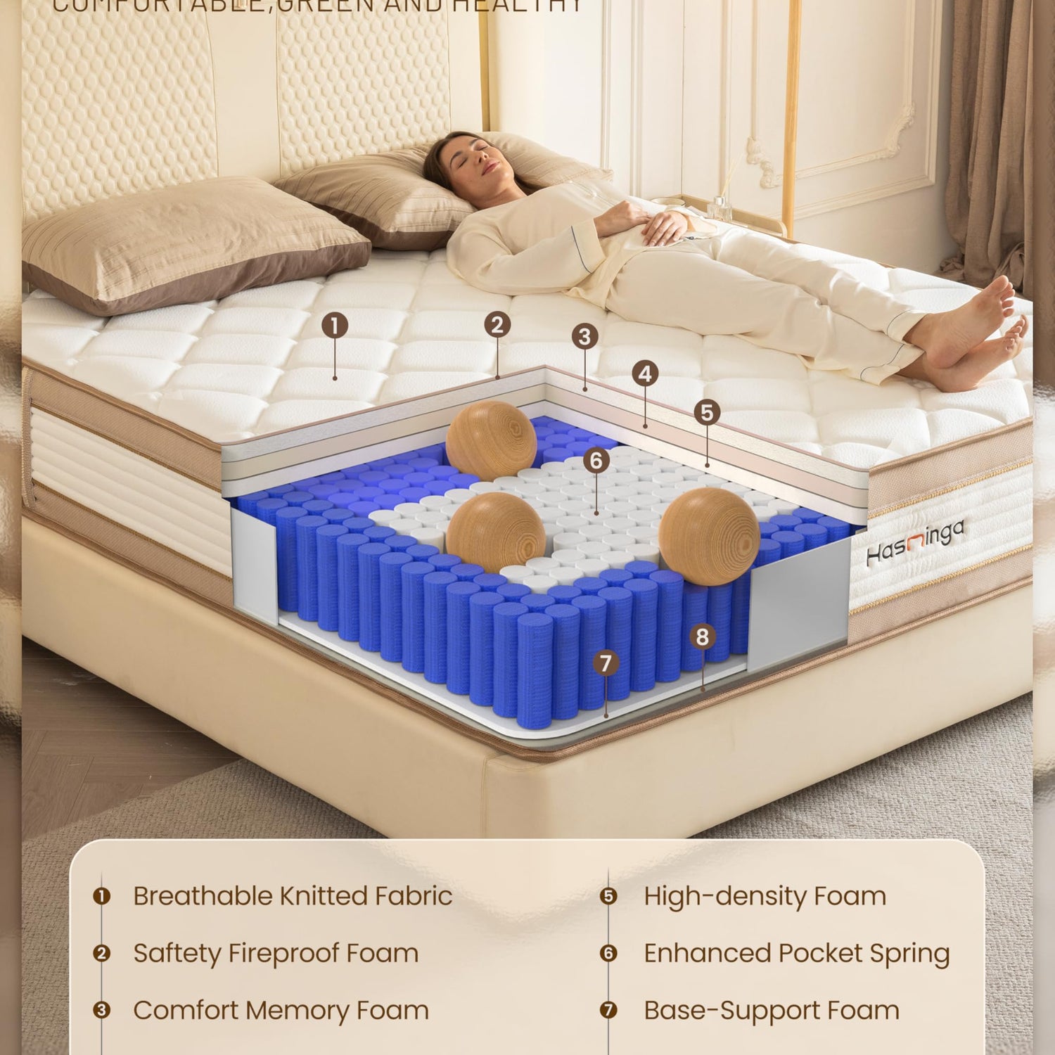 - 【Cooling Gel Memory Foam for a Refreshing Sleep】Stay cool all night! Our cooling gel memory foam layer absorbs excess heat and promotes airflow, keeping you comfortable and sweat-free. Perfect for hot sleepers looking for a breathable and refreshing sleep experience.