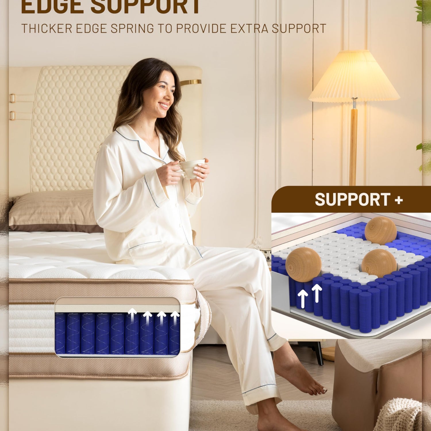 - 【Reinforced Edge Support – No More Sagging】Our hybrid mattress features reinforced edge support, ensuring superior durability and stability. Say goodbye to sagging edges—enjoy full support from corner to corner, making it easier to sit or sleep near the edge without sinking.