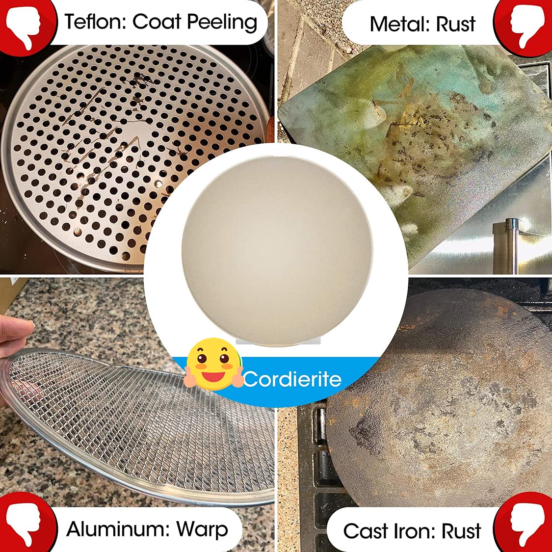 - 【WARNING】Never use soap or detergent to clean the stone! Never season Cordierite bread stone with oil or grease! 【WARM TIP】If your pizza stone arrives damaged or you need any assistance, please don't hesitate to contact us.