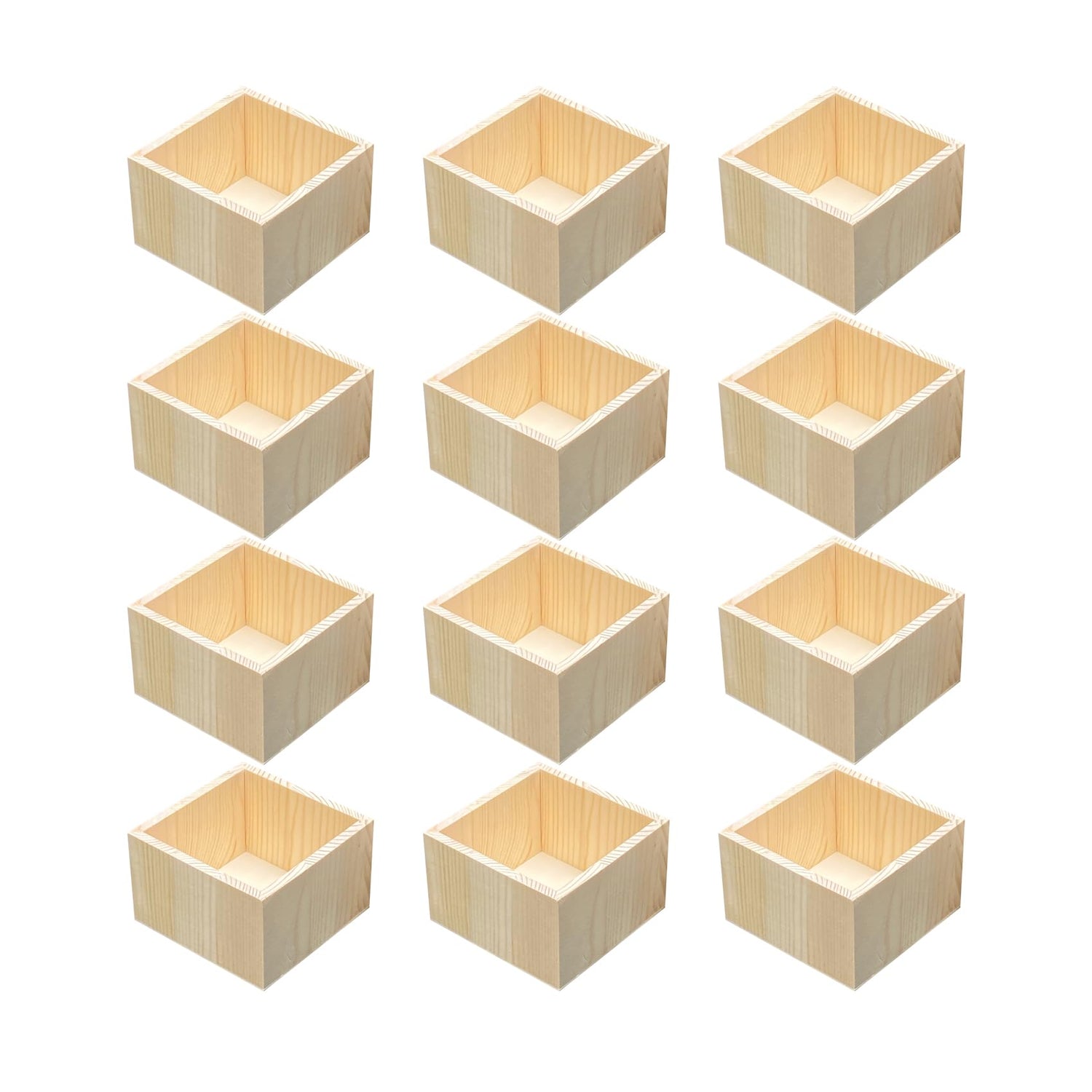 12 Pack 4.7 Inch Square Wood Box Unfinished Small Wooden Boxes for Crafts (Outer 4.7X 4.7X 3 in,Interior 4 x 4 x 2.9 in)