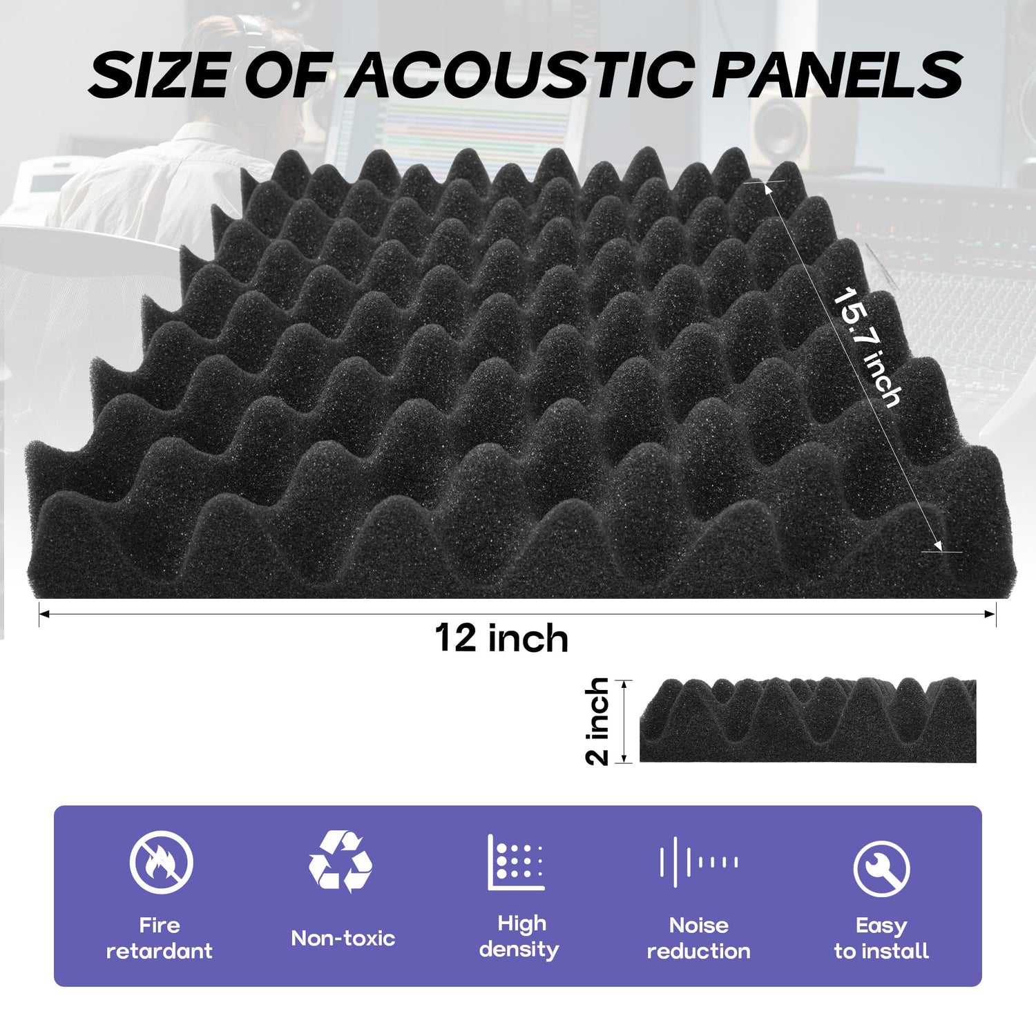- Premium Quality Material:12 pack 12"x15.7"x2" egg crate foam made of high quality polyurethane foam. Acoustic Foam Panels are odorless, non-toxic, durable. Sound proof foam panels for walls with flame retardant certification provide a safe and reliable solution for acoustic management