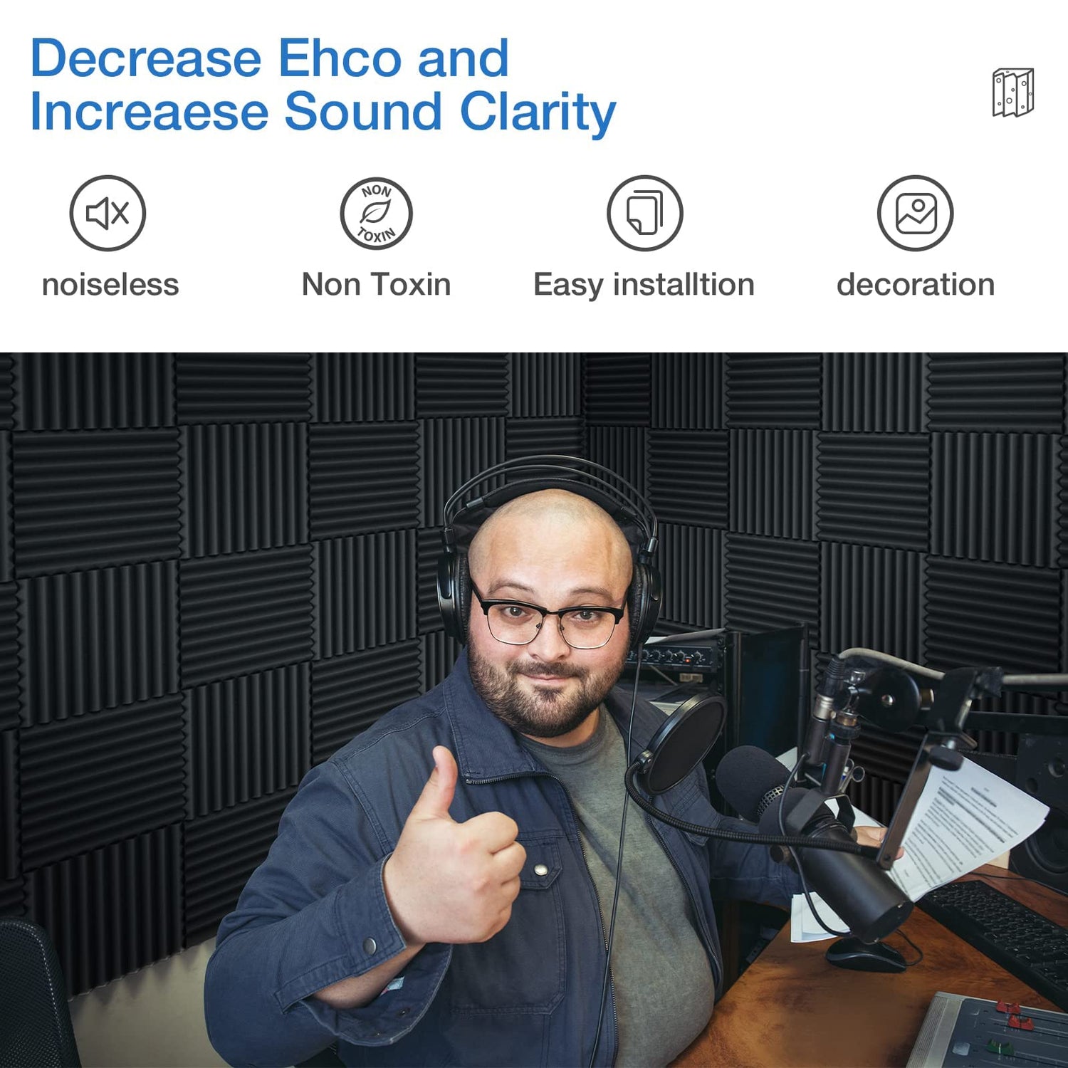 - 🎶【Sound Absorption and Aesthetics 】Acoustic foam panels absorb echoes and noise from surrounding areas while offering us with a harmonious and elegant atmosphere. Perfect for professional studios, video blogger,rehearsal rooms, concert halls, podcasting, school,home theaters, offices, pet kennels,etc.More sound foam panels and the effect are better.