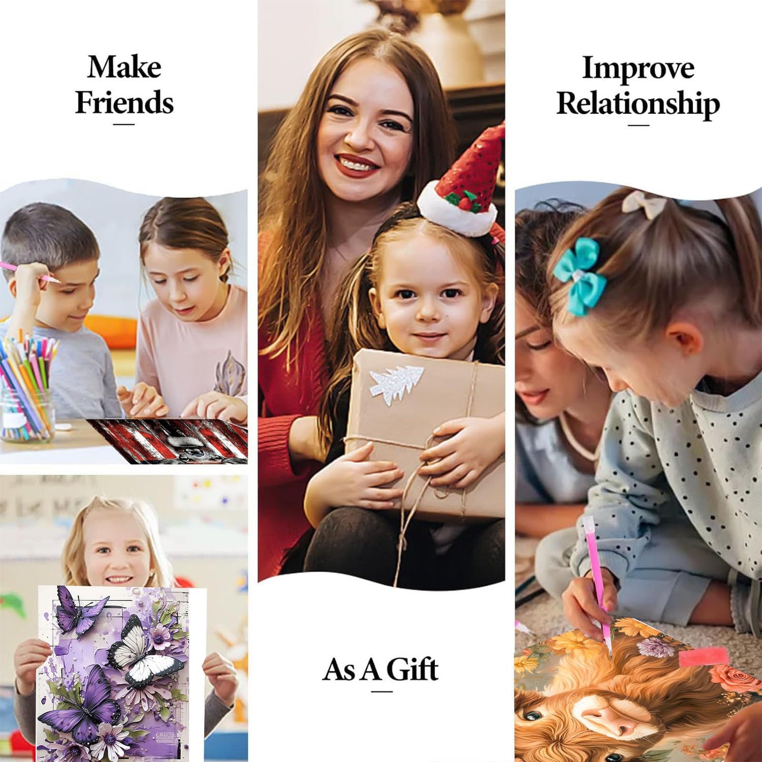 - [Thoughtful design, good gift] 5D diamond painting kit is a good choice for family time. Whether it is given to children, friends or family, it is a thoughtful and creative gift, suitable for birthdays, festivals, anniversaries and other occasions.