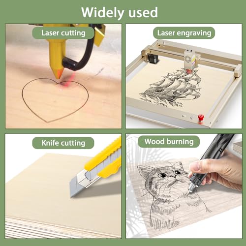 - 【Tool friendly】3mm thick plywood sheets are suitable for many tools.You can use the scroll sawing,laser engraving tools,laser cutting tools,knife and wood burning tools to complete the creation.