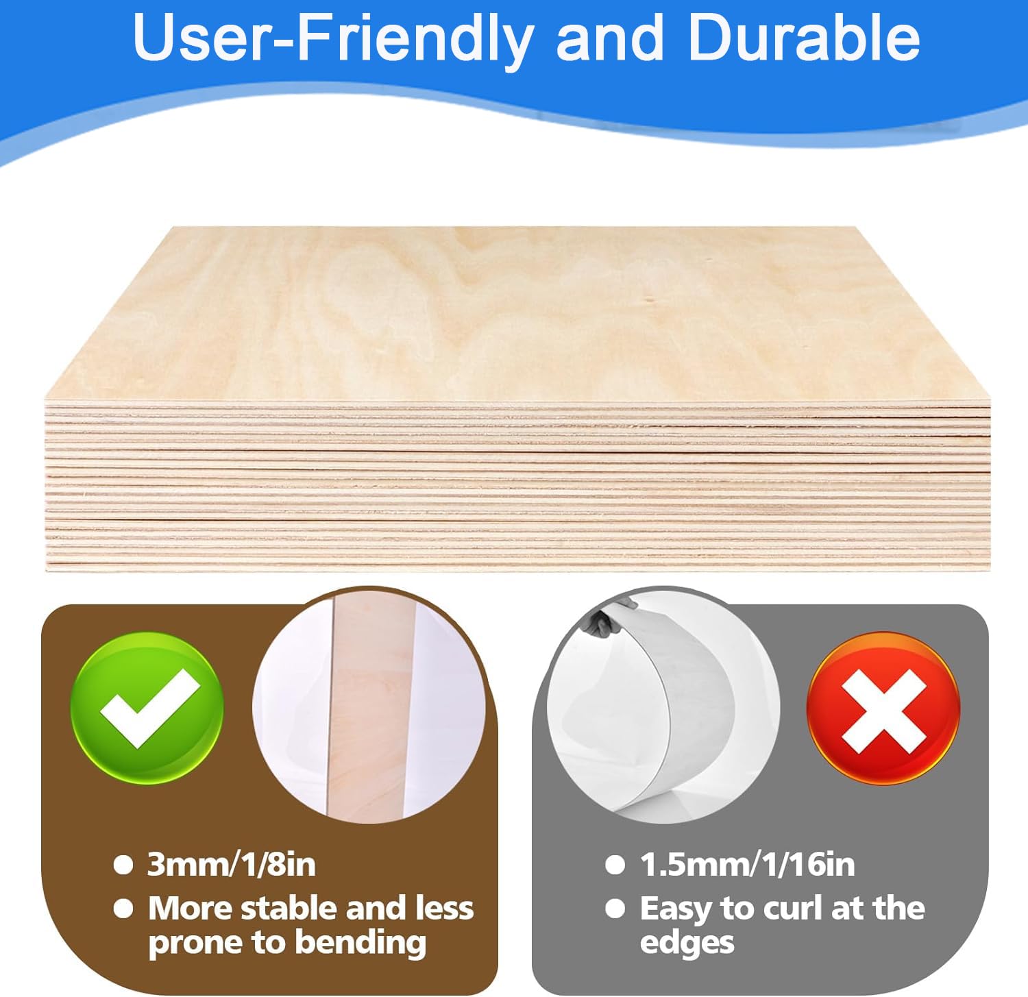 - 【Versatile Crafting Material】Crafted from premium basswood plywood, these sheets boast a smooth and sturdy surface, making them ideal for a range of applications, including laser scroll sawing, wood burning, drawing, model carving, and more.
