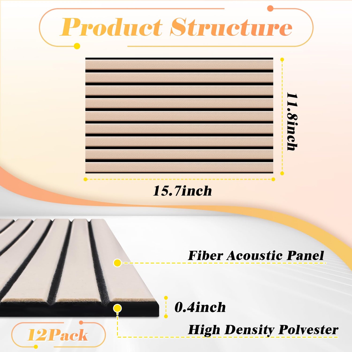 - [Upgraded Sound Absorption Panels] Our sound absorption Panels is made of felt laminating technology, with vertical bar sound absorption function, while the sound absorption performance and appearance have been upgraded. It can not only reduce the noise, but also play a beautiful decorative role on the wall. Each set consists of 12 sheets, each measuring 16 x 12 x 0.4 inches