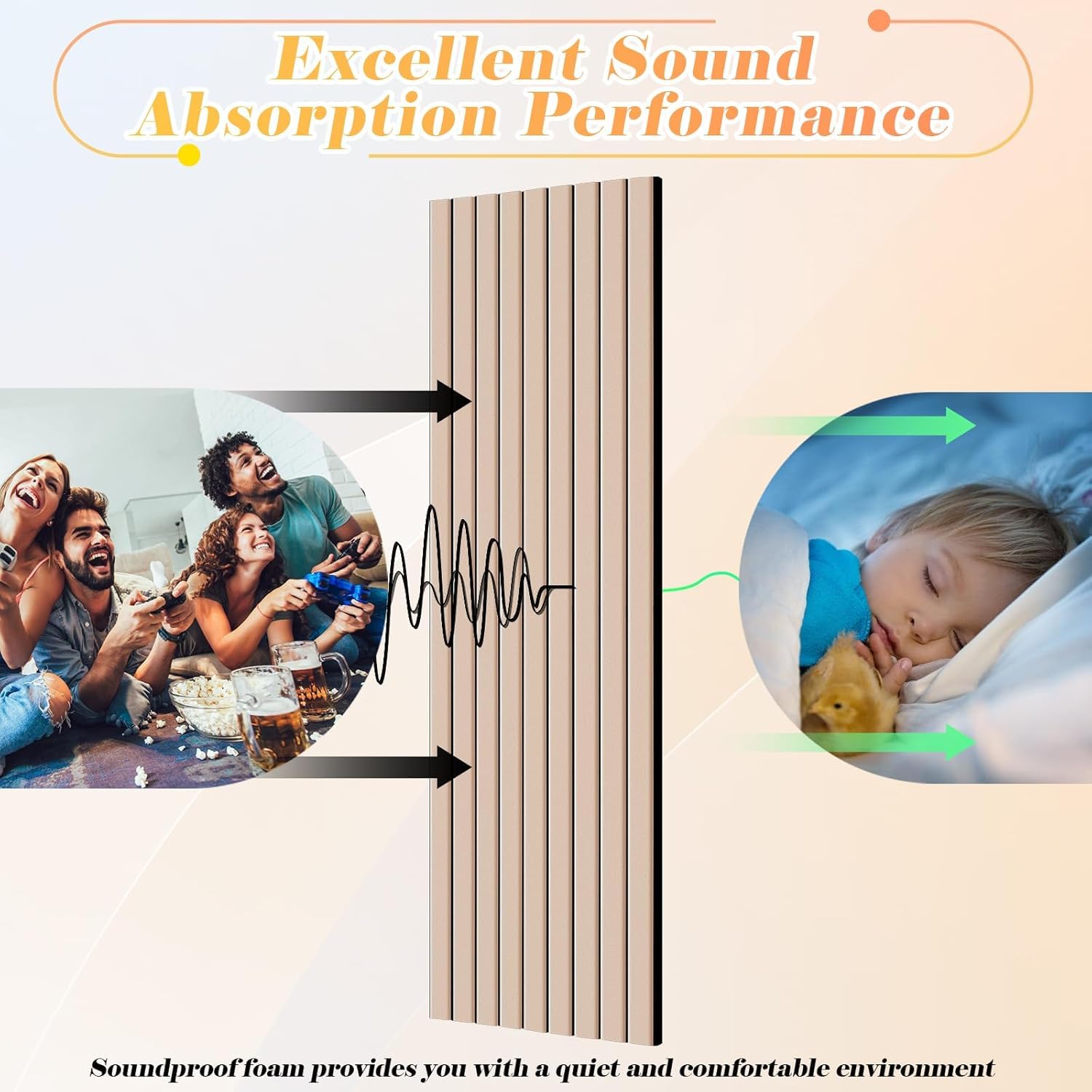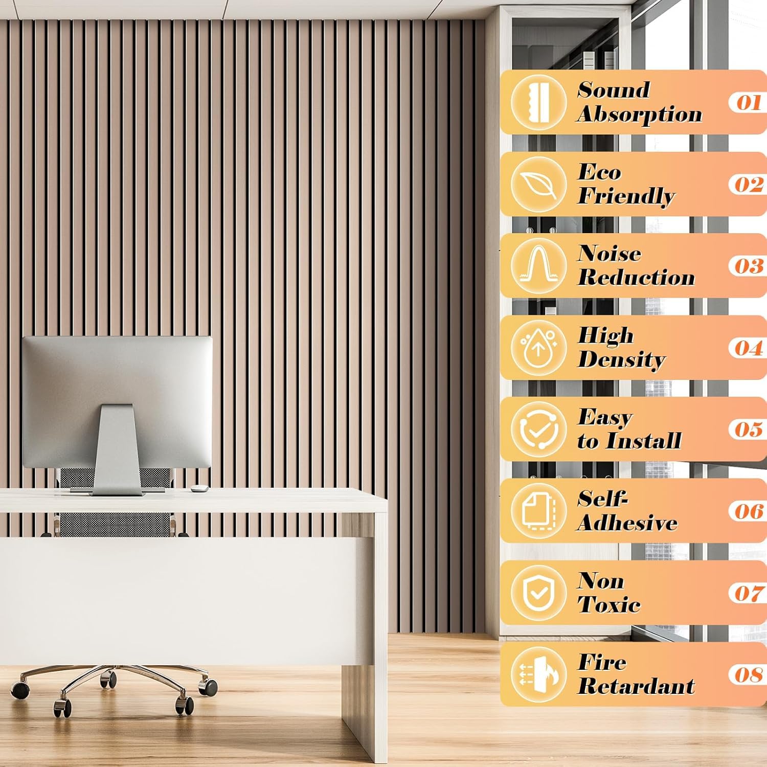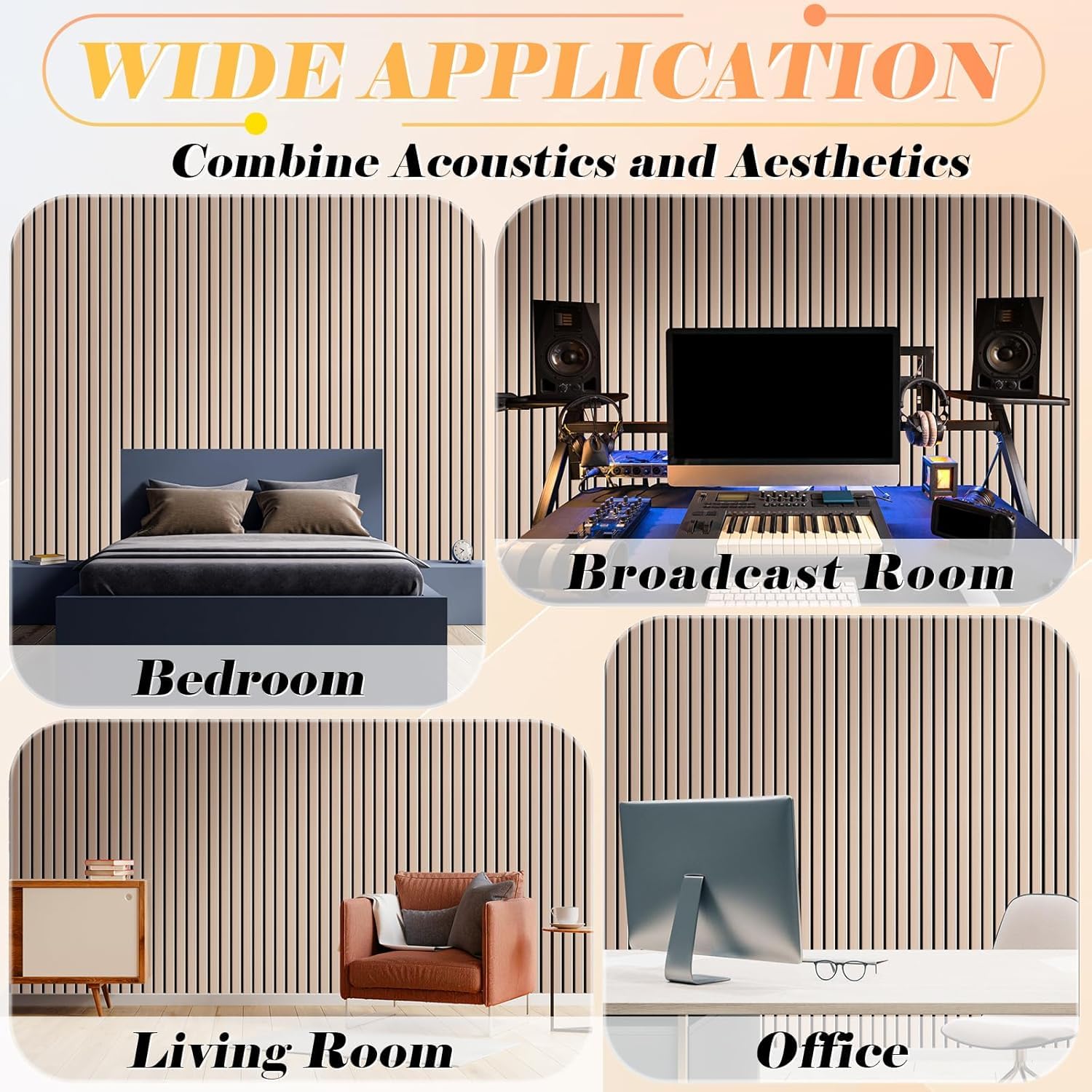 - [Acoustic and Aesthetic Integration] The sound panels are a striped pattern design, which not only makes the wall look beautiful and unified, but also can be installed on the door and ceiling, which helps to reduce noise and echo. It is an acoustic and aesthetic sound-absorbing wall board, suitable for most activity areas