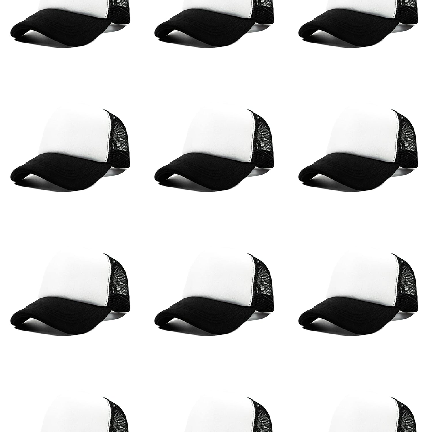 12 Pack Sublimation Hats for Men Blank Trucker Hats Bulk Snapback Mesh Women Baseball Caps DIY Custom 18 Colors (Black and White)