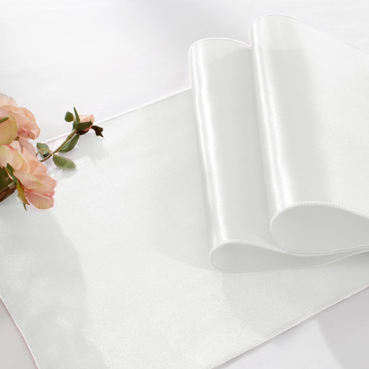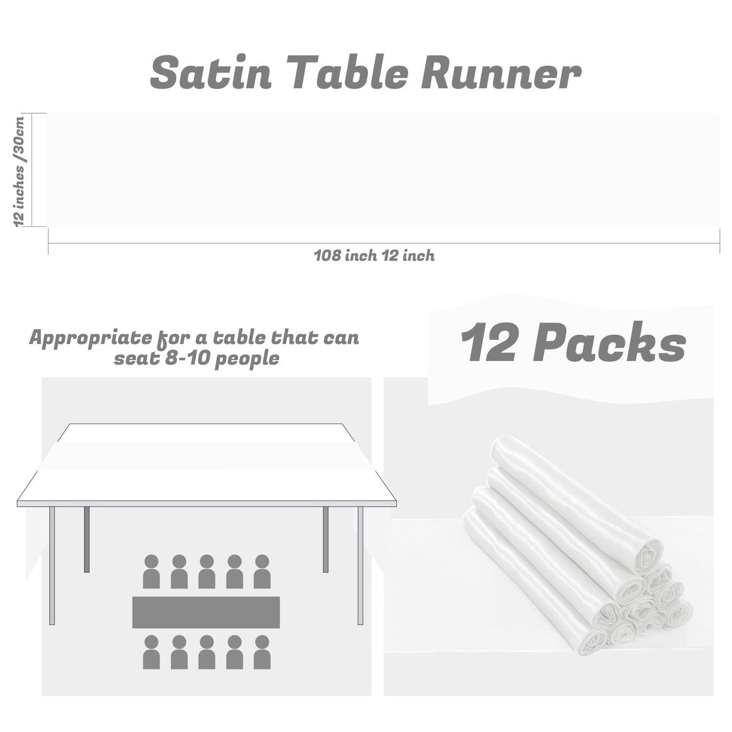 12 Pack White Table Runners 12 x 108 Inch, Rectangular Smooth Satin Silk Table Runner for Wedding, Banquet, Birthday Party Decoration