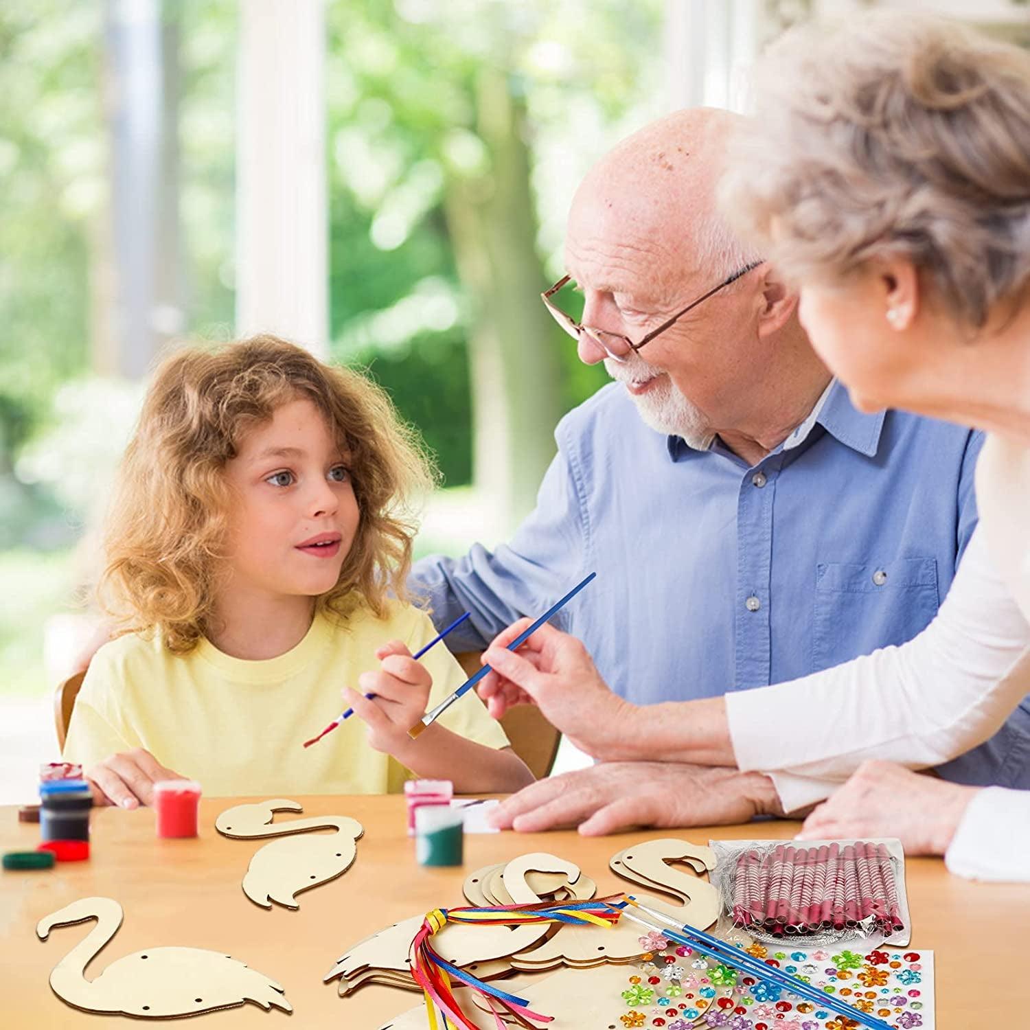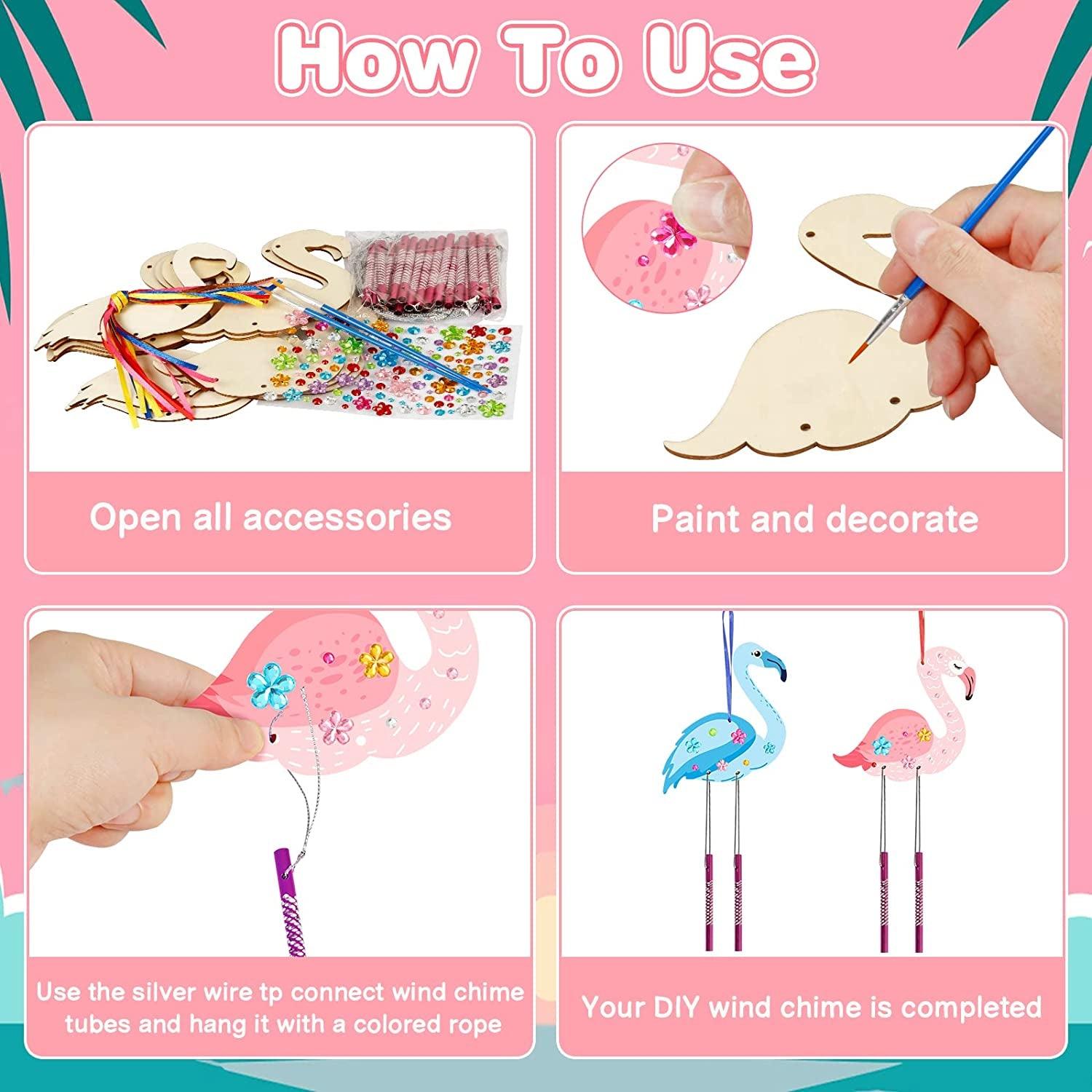 Flamingo DIY Wind Chime Craft Kit for Kids - 12 Pack Wooden Arts and Crafts Set
