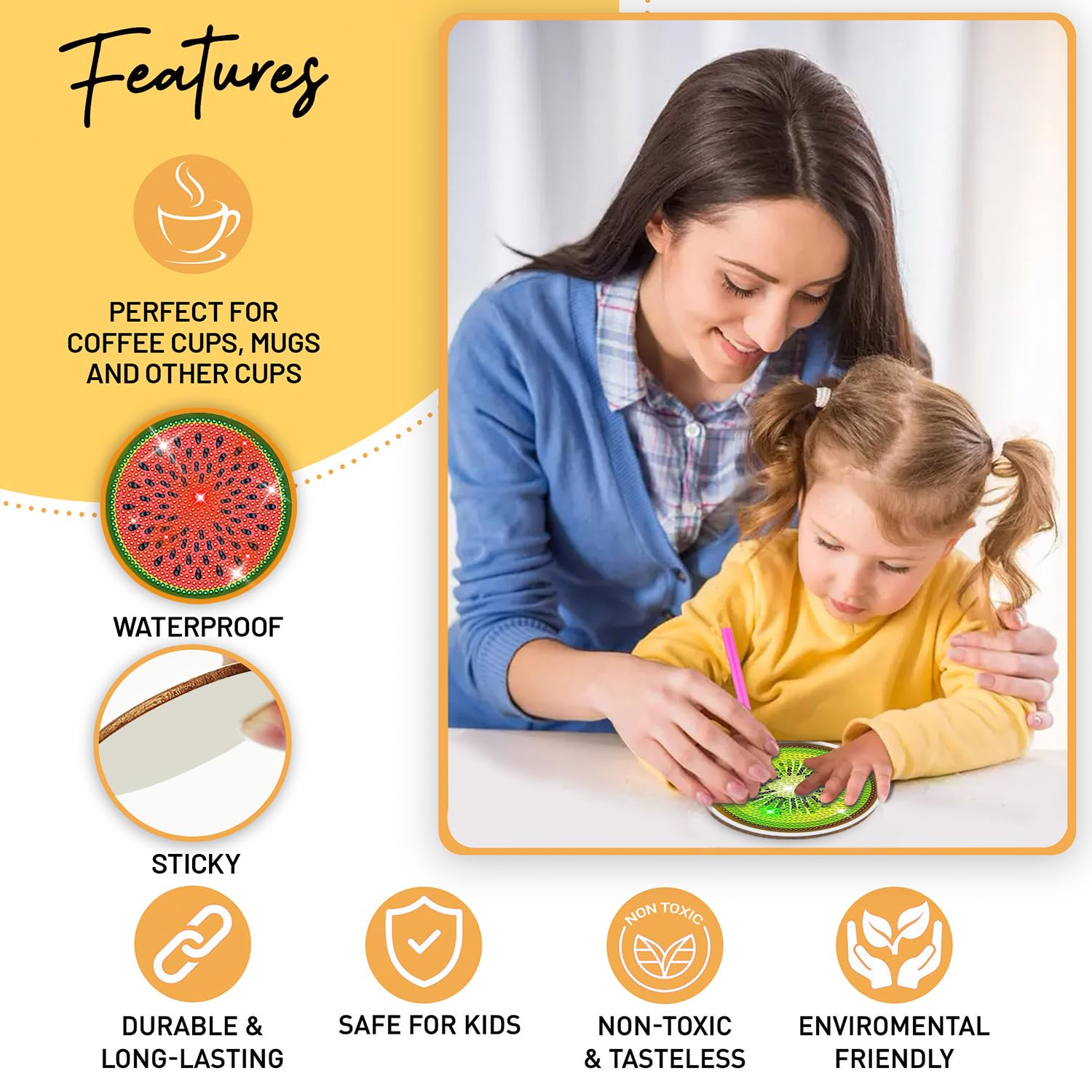 - Ideal Gift: Our Fruit diamond painting coasters with holder make an ideal gift for DIY craft enthusiasts. The DIY diamond art coasters kit can be given to your family and friends on birthdays, Christmas, and it is suitable for both children and adults.