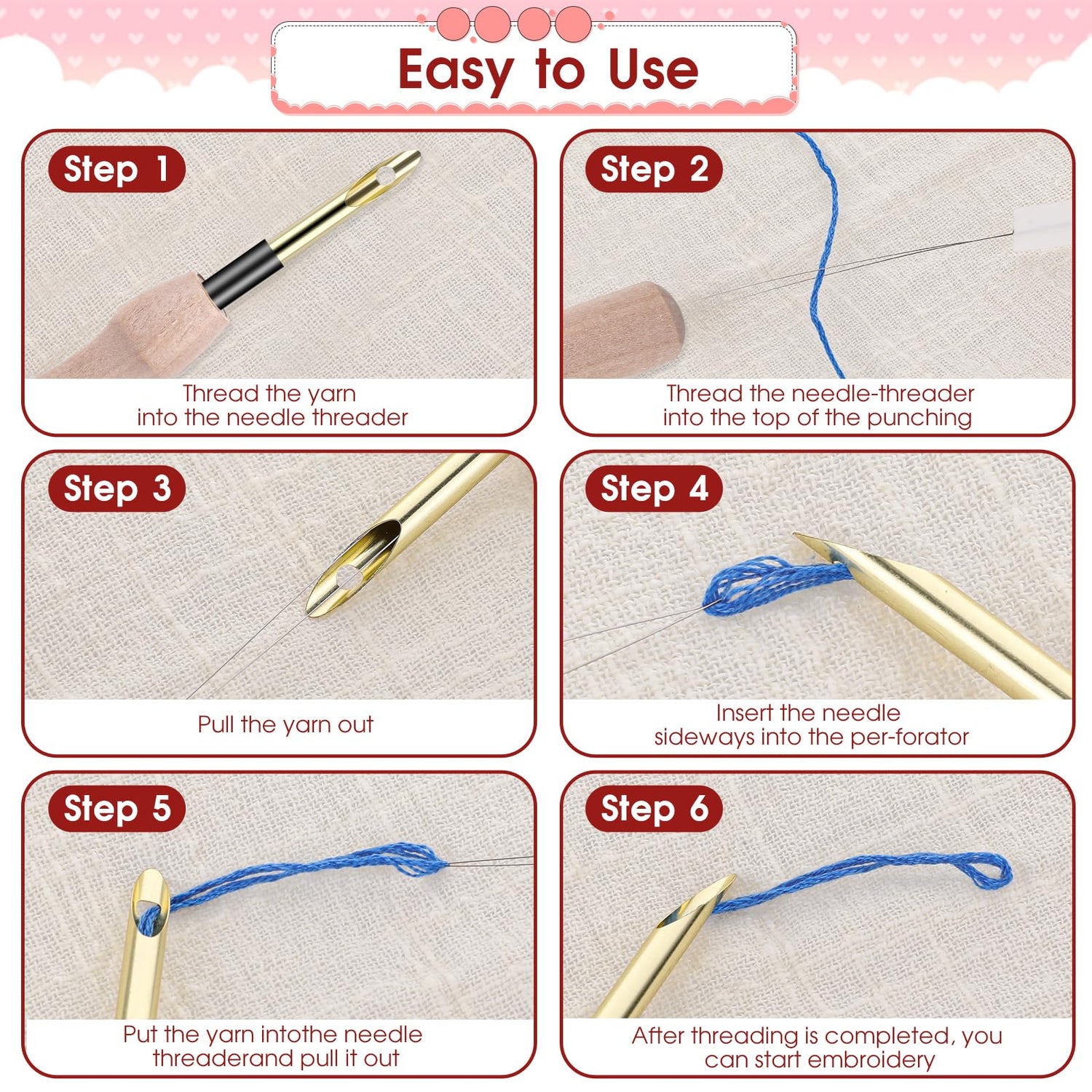 - Wide Application: This punch needle set can help you easily complete various handicrafts, and it is also very suitable for sewing cross stitch, embroidery, clothing, tablecloths, coasters, etc.