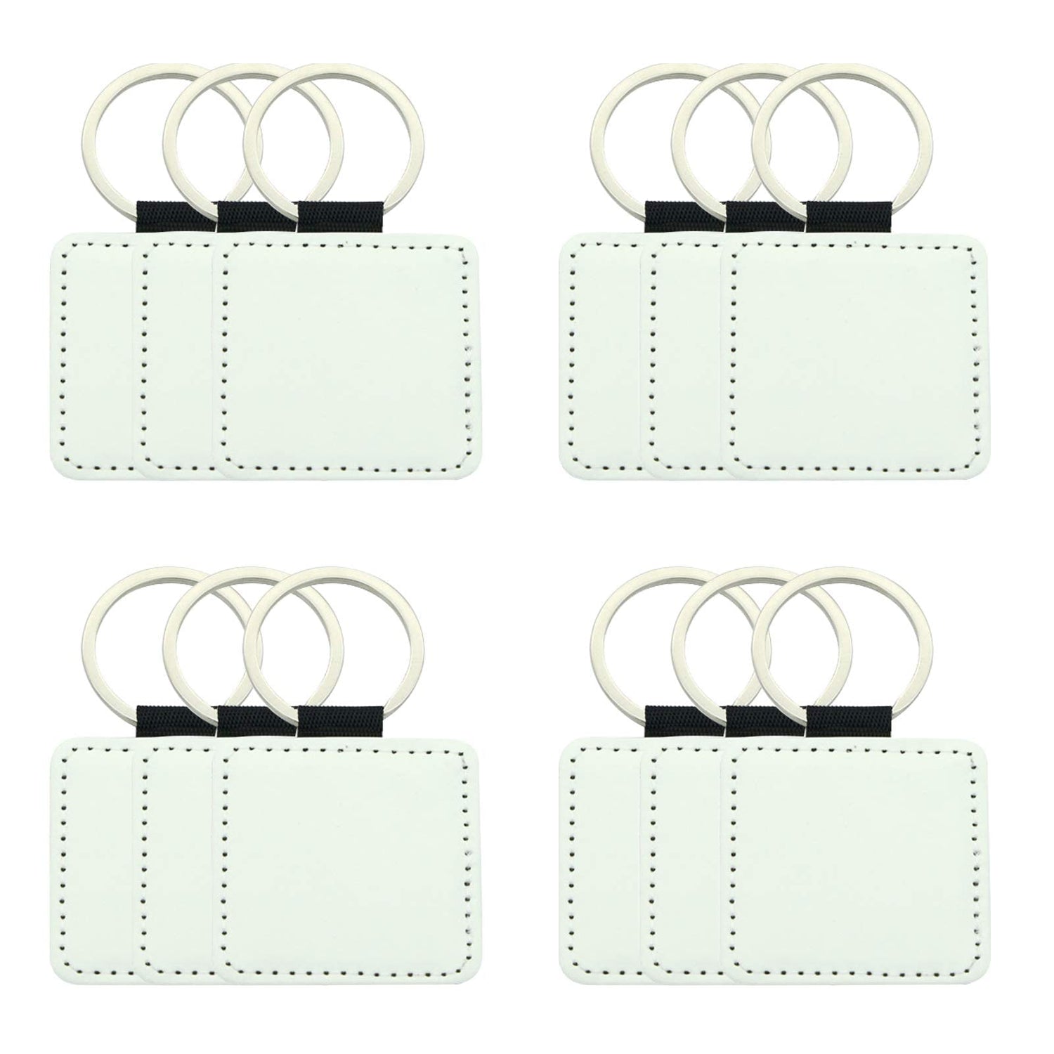 12 Pcs Sublimation Blank Keychains,PU Leather White Keychains Ornament Pendants for Man Women Crafts Heat Transfer (Square)