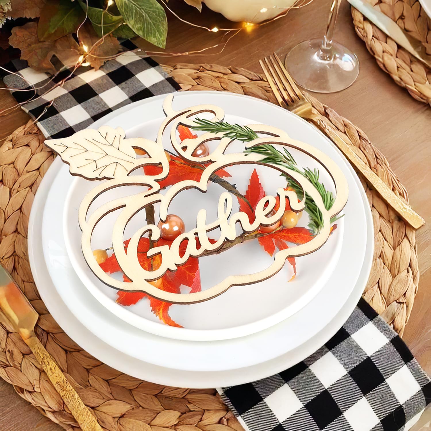 12 Pcs Thanksgiving Pumpkin Wooden Plate Decor Grateful Wood Cutouts Fall Autumn Thankful Blessed Favour Gather Party Place Card Table Settings Signs for Farmhouse Dining Table Holiday Harvest