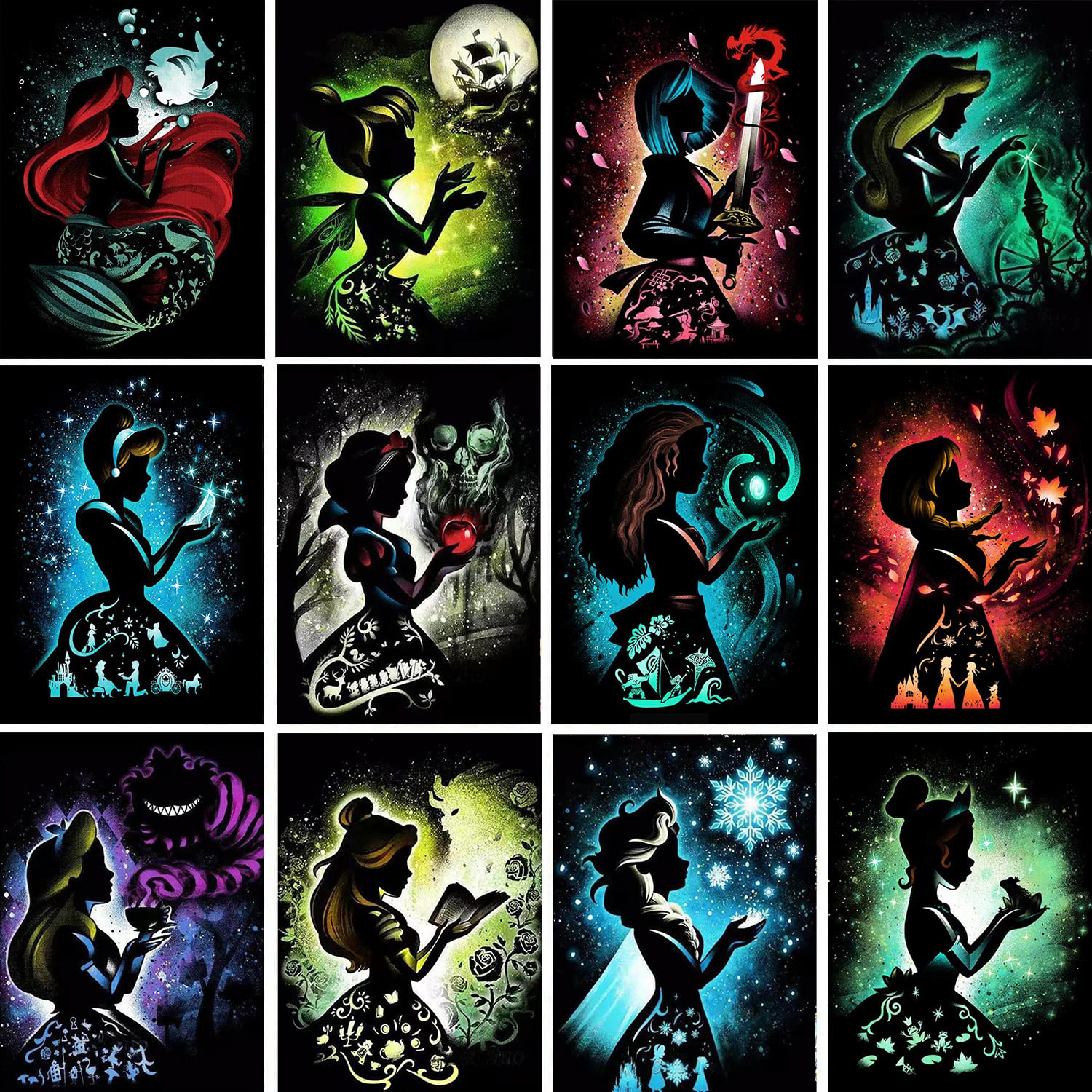 12 Pieces Princess Diamond Painting Kit, 5D Adult Diamond Art, Round Full Diamond Digital Painting Kit, Gemstone Art Painting Kit, DIY Diamond Painting Kit for Beginners (11.8x15.7in)