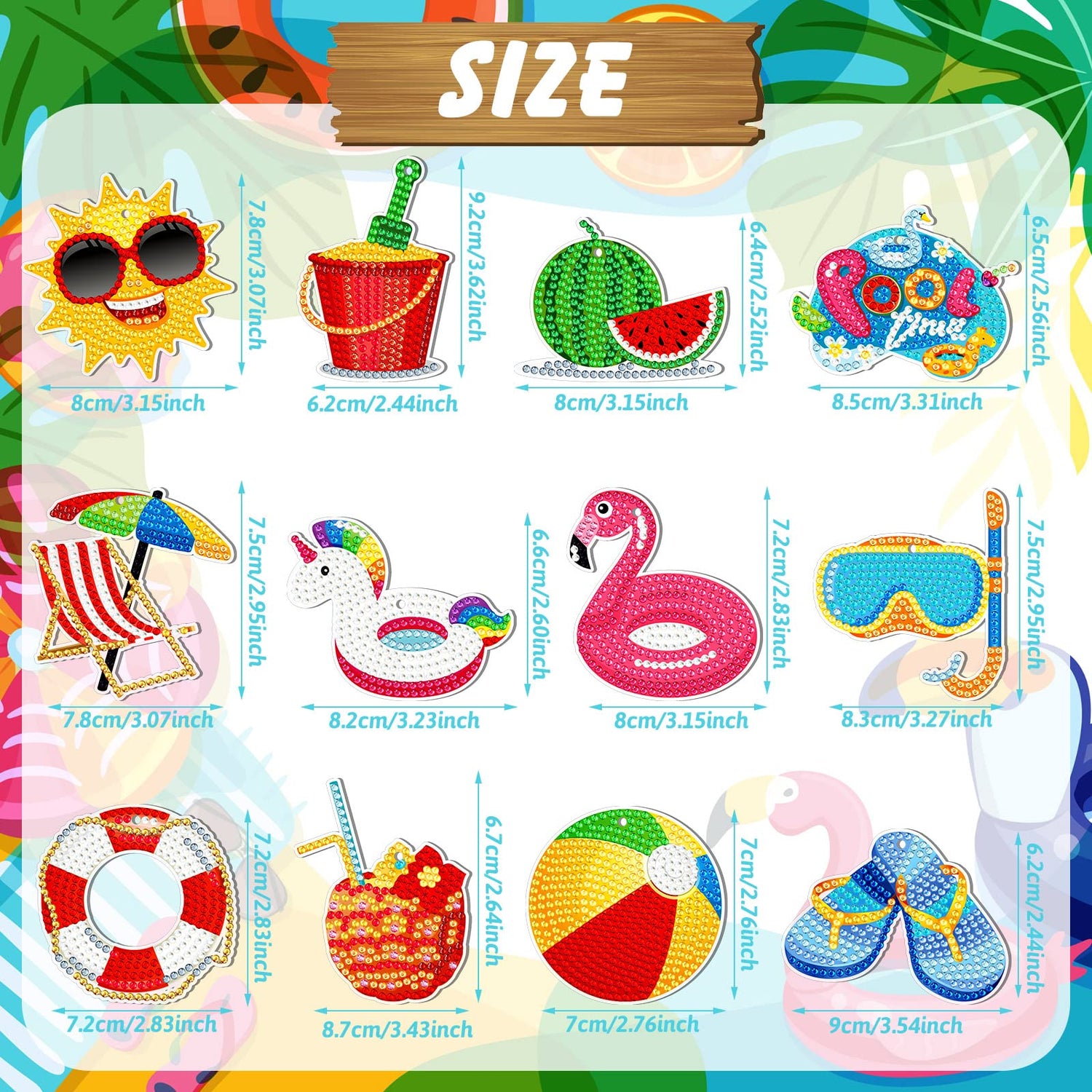 12 Pieces Summer Diamond Painting Keychain 5D DIY Diamond Painting Kit Summer Hanging Diamond Art Kits Diamond Art Summer Ornaments for Kids Summer Crafts Family Decor (Summer Style)