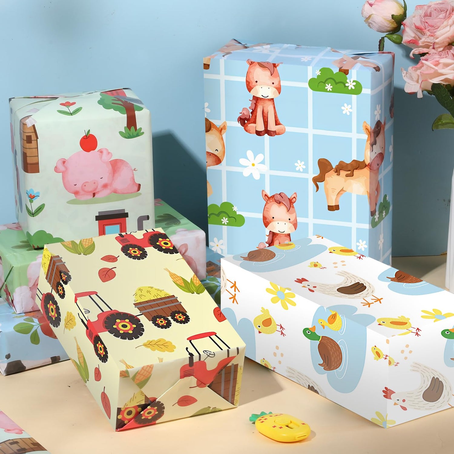 - IDEAL FOR AN ARRAY OF OCCASIONS: Not just pretty, but practical too, our farm animal-themed wrapping paper is suited for multiple events, making it a versatile addition to your wrapping supplies. From agricultural fairs to children's parties and seasonal festivities, the whimsical designs can effortlessly match your event's theme or simply add a dash of playful charm to your gift presentation