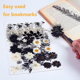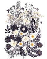 - 🌼Made of natural flowers and leaves, thus each piece varies slightly in size and shape.Each package contains 12 types of plant materials. total about 48 pcs black white flowers.