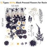 Details: 12 Types 48PCS Real Dried Pressed Flowers for Resin, Leaf Plant Herbarium for Jewelry Making Craft (Black and white)