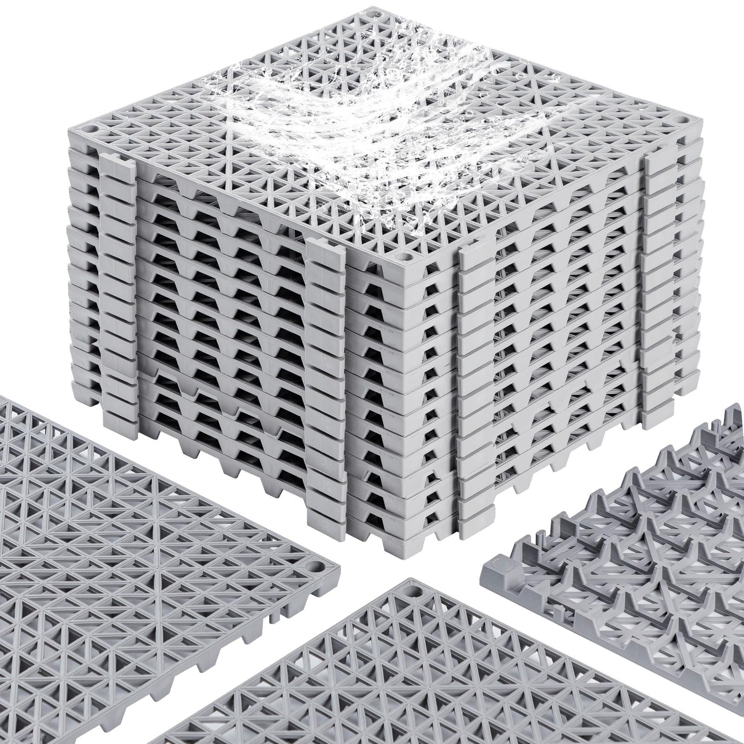 - Interlocking Drainage Mats for Indoor and Outdoor Use: The non-slip floor tiles with holes have excellent drainage underneath and are ideal for damp and ventilated areas as the drainage tiles stop water from pooling and allow the floor to dry out on its own; perfect for walk-in showers, outdoor hot tub entrances and exits, pool areas such as pool slides and pool shower floors, basement and garage floors, camping doormats, or RV mattresses, and more