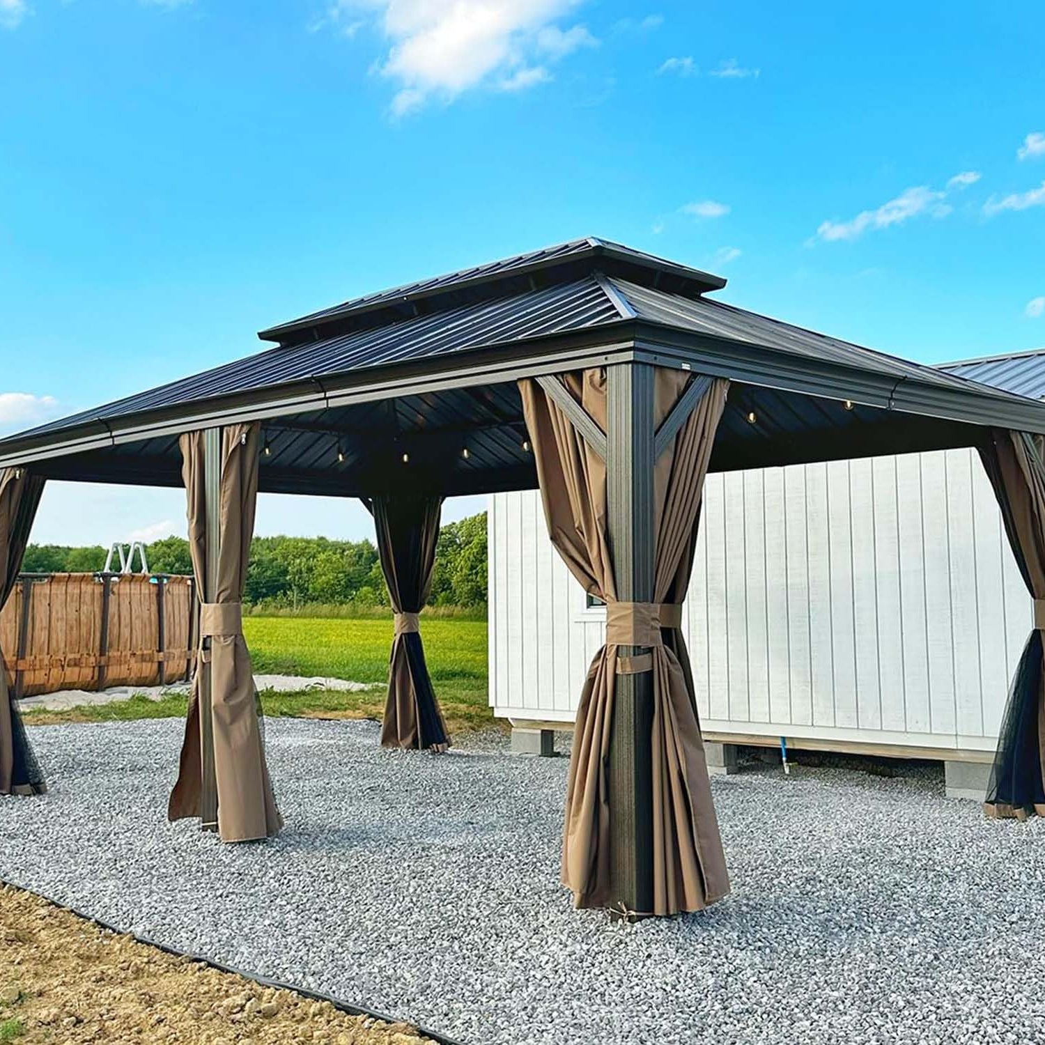 12' x 20' Hardtop Gazebo Outdoor Aluminum Gazebos with Galvanized Steel Double Canopy for Patios Deck Backyard,with Curtains&Netting by domi outdoor living Brown