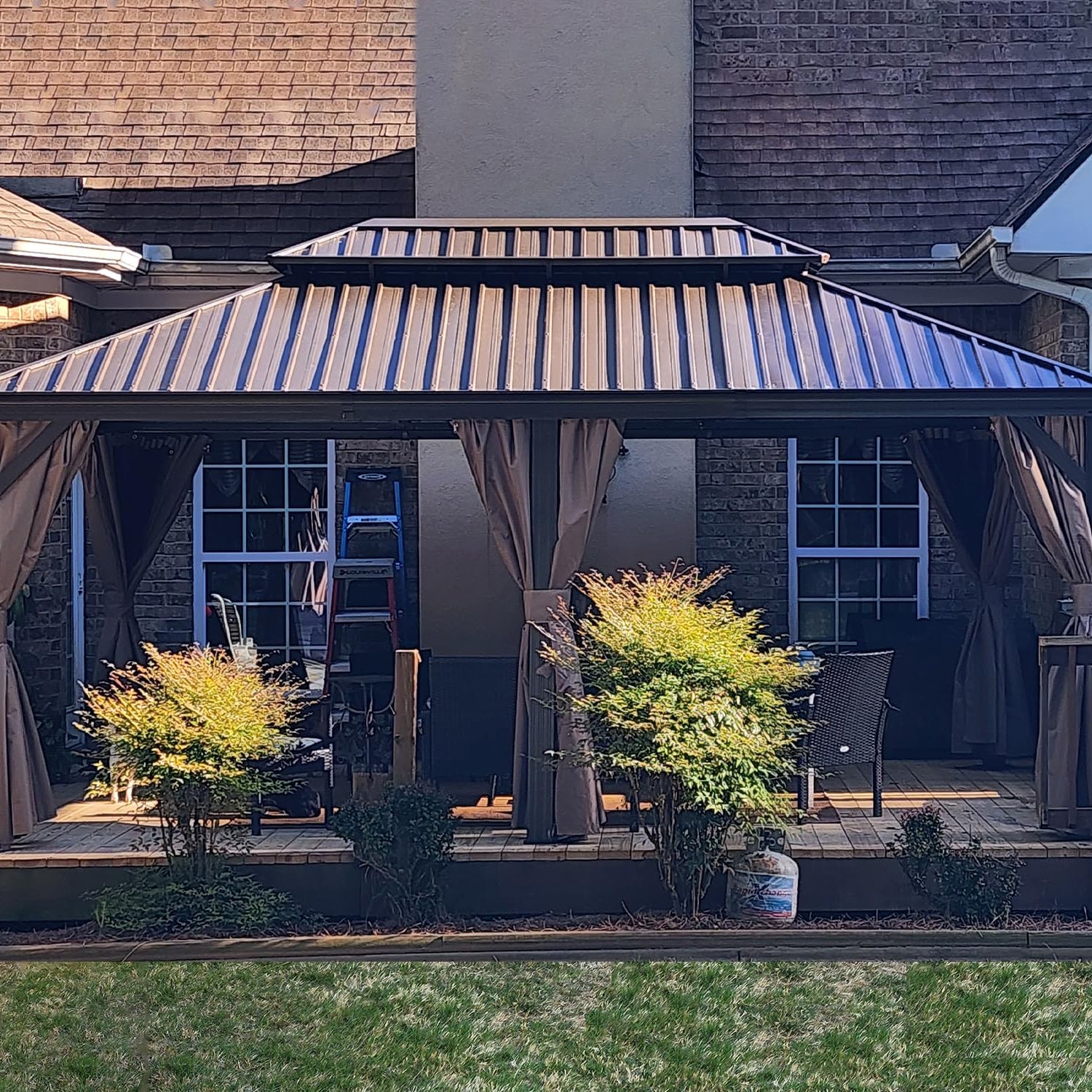 - ❤️Multiple Usage- The permanent gazebo can provide a comfortable outdoor space for entertaining guests, whether for a family dinner, a barbeque with friends, or a larger event like a wedding or birthday party.