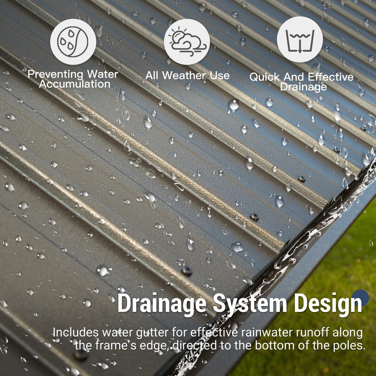 - ❤️Choose Domi hardtop gazebo for an exceptional outdoor experience- Our built-in drainage system collects rainwater on the roof, flowing down from inside the column to the ground through the gutter. This feature ensures you can enjoy the tranquility and comfort of outdoor life even on rainy days, avoiding any chaos caused by rainfall. If you value quality, choose Domi gazebo for a seamless outdoor experience.